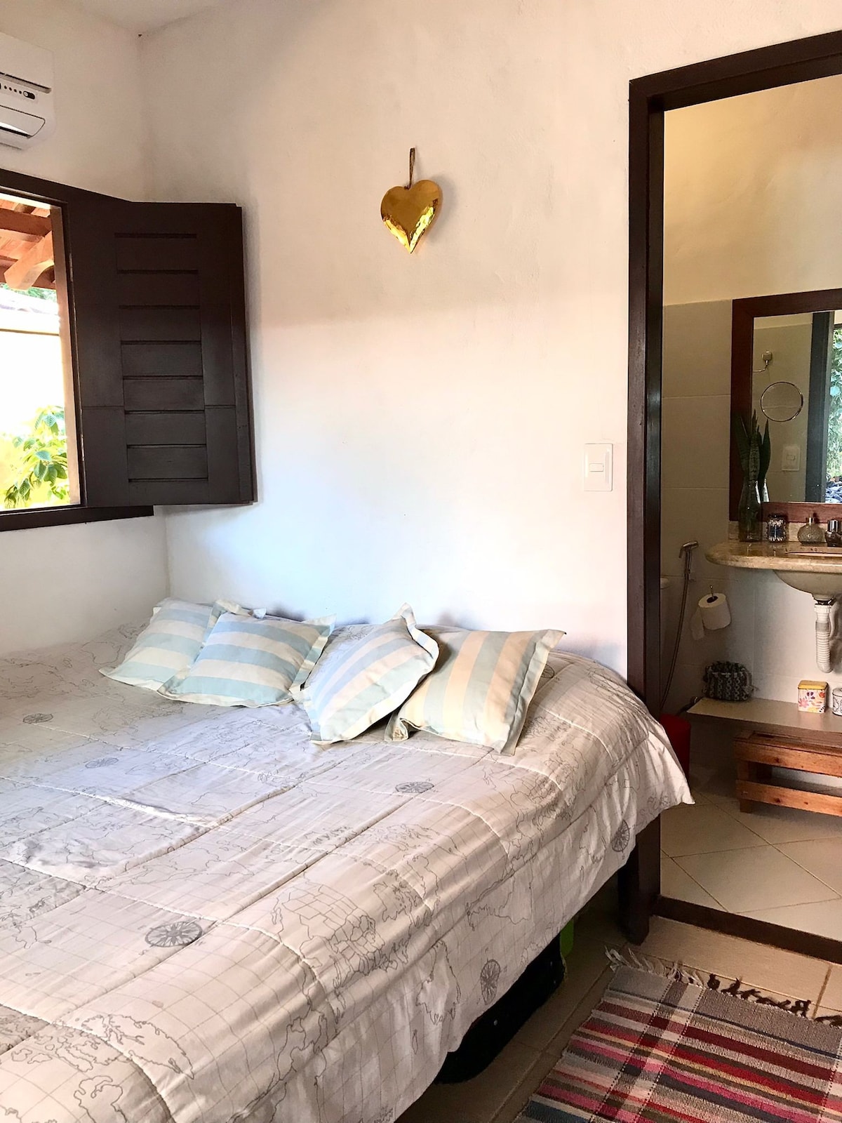 São lindas casinhas independentes, com amplo jardim em meio às arvores, agora com esse espaço totalmente novo. Conta com 1 cama de casal, (roupas de cama e toalhas de banho trocadas a cada semana), Ar Condicionado e ventilador de teto, TV , WiFi, mesa para trabalhar, cozinha americana equipada com utensílios básicos, fogão e geladeira, banheiro com chuveiro elétrico, rede, área de serviço, chuveiro externo e estacionamento externo para carro. Estou disposto a qualquer ajuda ou informação.