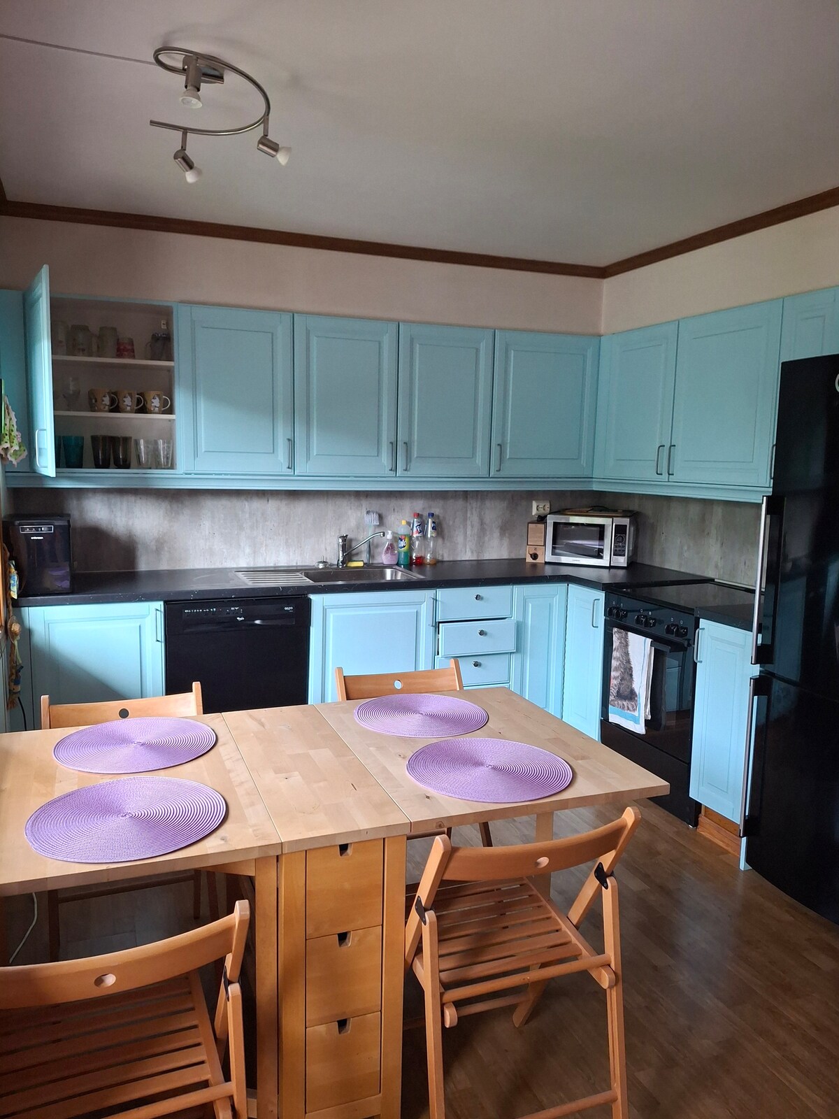 This place is located by a lake 30 km south of Stavanger. If you want to take a bath or fish in the lake, you are free to do that. There is also a possibility to use our two kayaks. The area offers good hiking opportunities such as Preikestolen and Kjerag. In this lovely place you are getting your own kitchen, a big bathroom with a walk in shower and a bathtub, a nice bedroom and a good sized living room with a nice view over the garden and the lake.