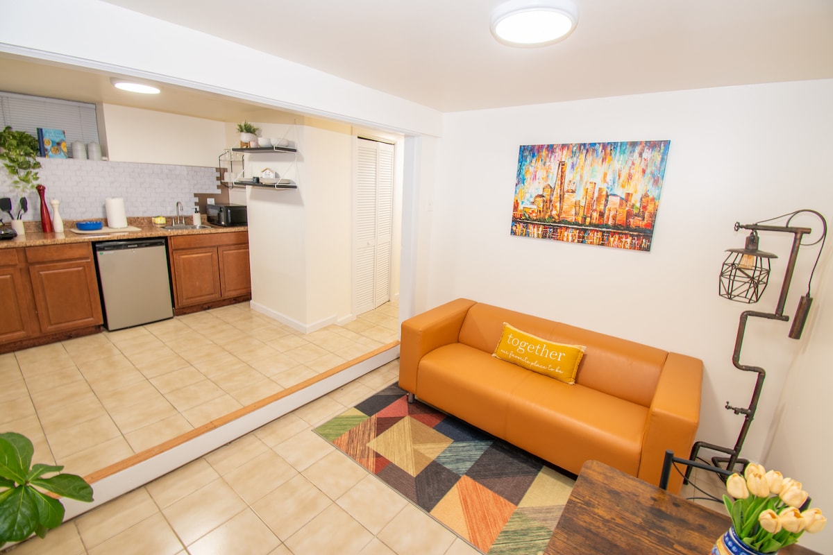 Təmir edilmiş və rahat 2 yataqlı (1x Yataq və 1x Divan Yatağı) studiya süitamızda qonağımız olun. Dolabda geniş Gəzintidən bəhs etdim?! Xüsusi giriş, böyük hamam otağı, Roku TV, Wi-Fi və digər imkanlar var. Paylaşılan paltaryuyan maşın/quruducu. ***Midtauna və ya Mərkəzi Manhettenə*** • Avtobus dayanacağına qədər təxminən 10 dəqiqəlik məsafədə dik bir təpə. • 40-50 dəqiqəlik avtobus gəzintisi. • Sürücü, Uber alaraq və s: təxminən 20 dəqiqəlik yol (tıxac yoxdursa).
