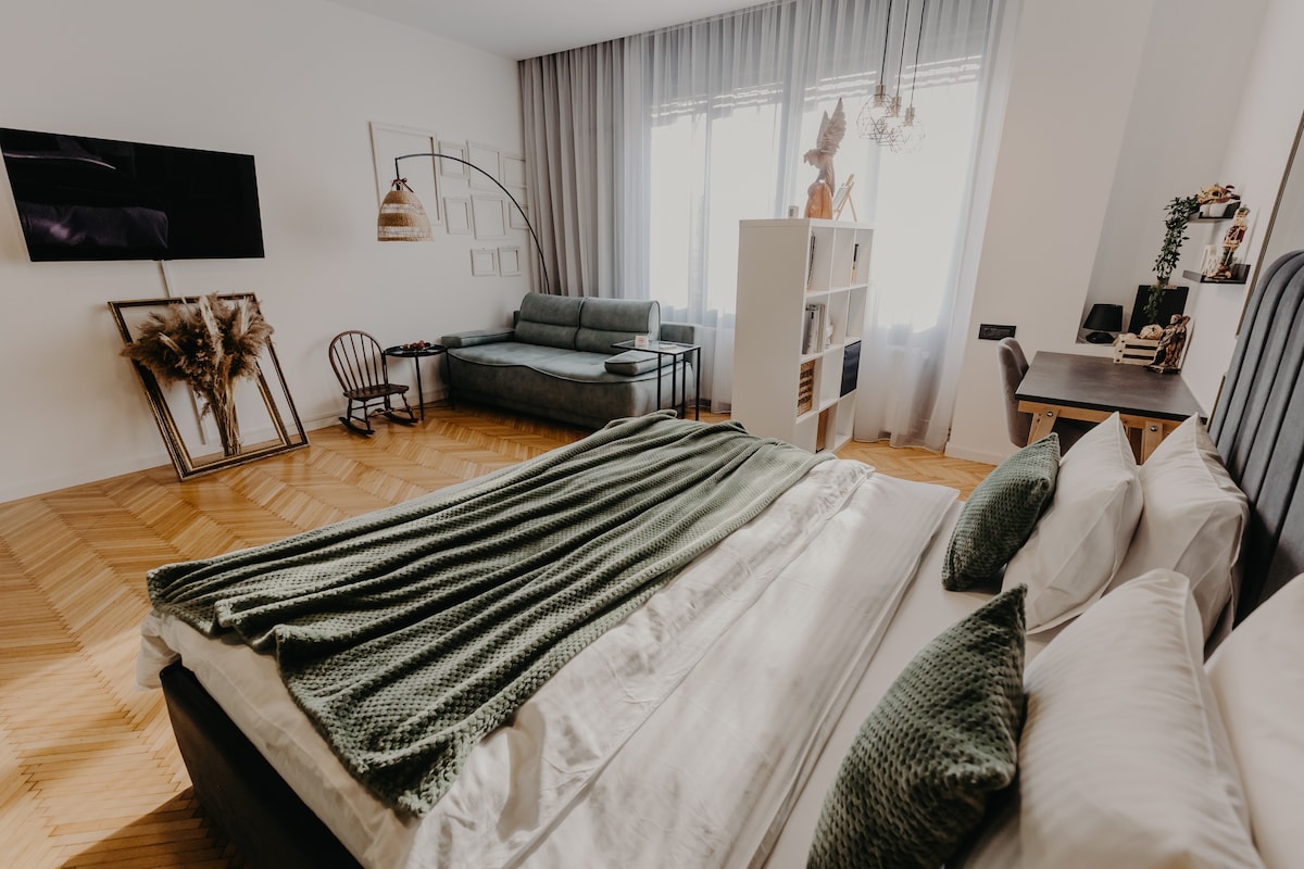 A place where the noise fades, the lights soften, and time slows down just enough for you to breathe differently. Set just a short walk from Unirii Square, this elegant studio combines a central location with a calm, refined atmosphere. Warm lighting, soft tones, and a thoughtfully designed space create comfort from the moment you arrive. Evenings feel slower, mornings begin gently, and the city remains close—yet never overwhelming. A premium retreat designed for relaxation and comfort.