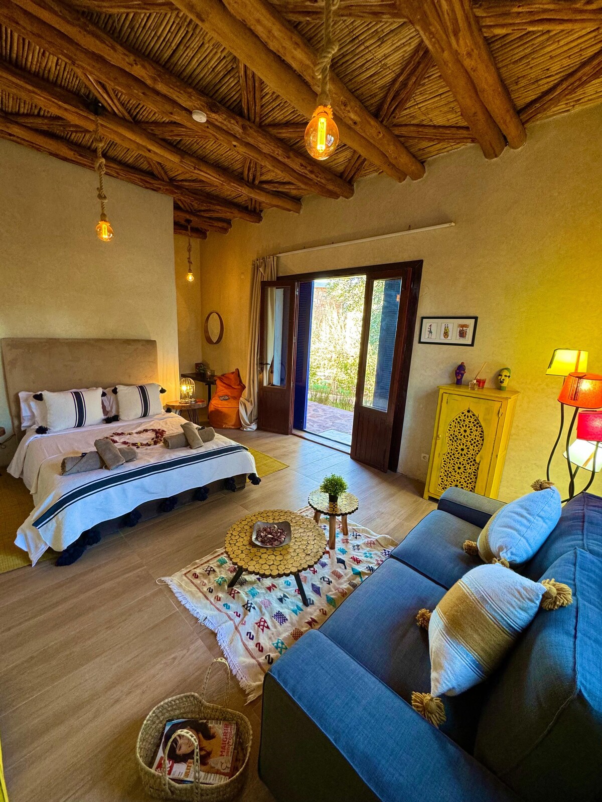 Evimiz yerli əhali ilə tam inteqrasiya edilmiş orijinal şəraitdə məkan, məxfilik, rahatlıq və eksklüzivlik təklif edir. Bu, Cənubi Mərakeşin mahiyyətindən dinc şəkildə zövq almaq istəyən səyahətçilər üçün idealdır.