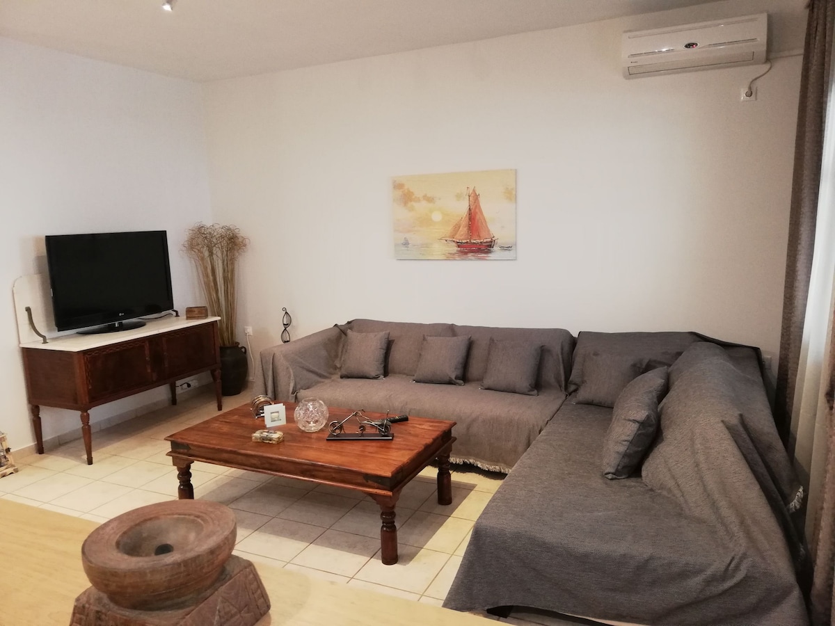 Dənizlə üzbəüz, çox gözəl mənzil, ikinci və sonuncu mərtəbədə böyük iki otaq, tək ev kimi. Mənzildən davam edən, yeni limana, dənizə və yaxınlıqdakı adalara (Dilos, Syros, Mykonos, Naxos,Paros) baxan mənzərəli gözəl 38 kvadrat metrlik terras. Bütün əsas otaqlardan dənizə heyran ola bilərsiniz. Cazibədarlıq, keyfiyyətli materiallar, incə və incəsənət dekorasiyası çoxdur. Şəhərin mərkəzində çox yaxşı yerləşir: nəqliyyat, mağazalar, restoranlar, yaxınlıqdakı çimərliklər