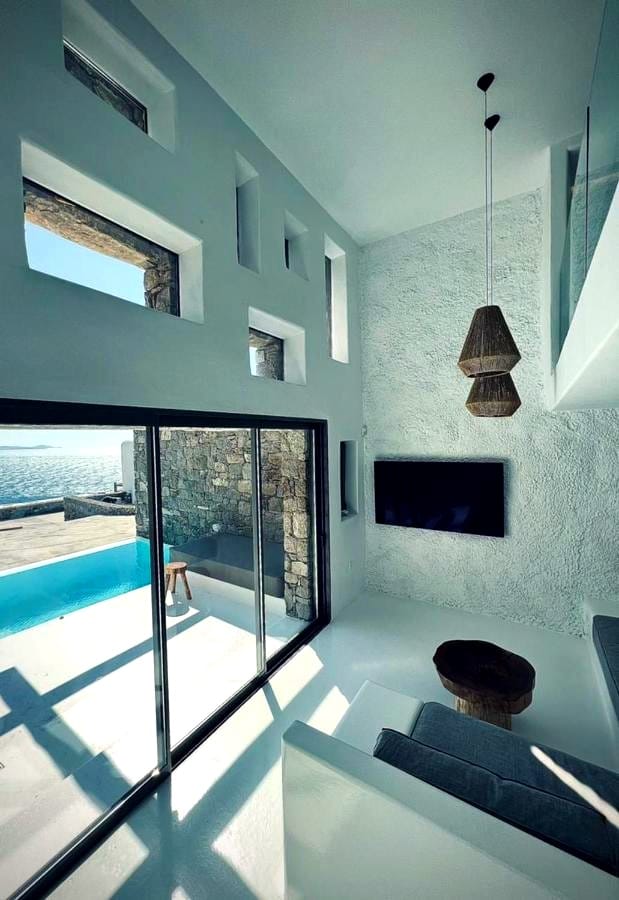 Most known for its contemporary Mykonian style which encompasses a feeling of tranquility, ingeniously blended into its natural surrounding ensuring its guests with absolute privacy and isolation.This prime location estate gives you an astonishing 180-degree of the blue horizon extending before you including the islands of Syros and Tinos. Trust us! We give you a guarantee of impeccable hospitality services and of unforgettable memories on the island of the Winds.
