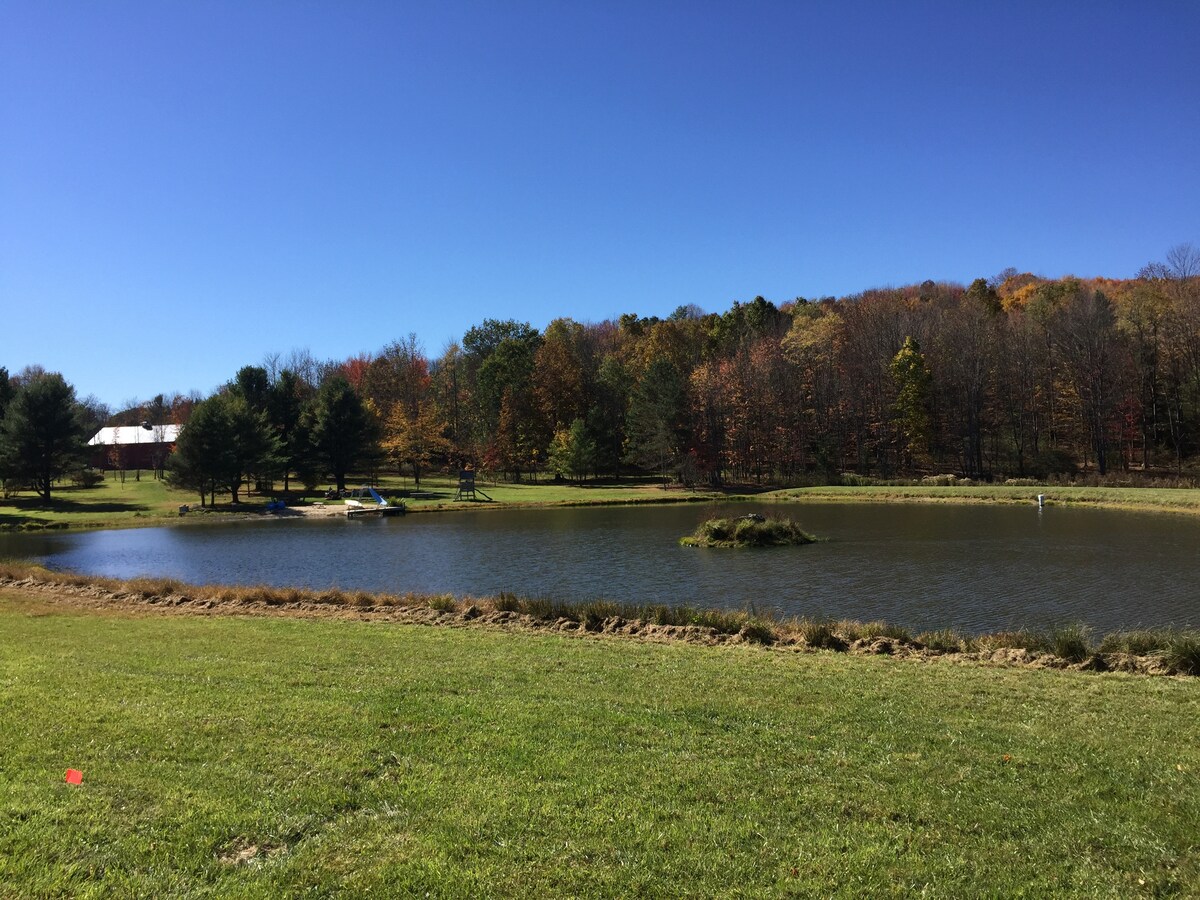 The barn is a cozy and unique space, situated on 27 acres of meadow and forest with a pond for swimming, fishing, and ice skating, depending on the season. There is no highway noise on the dirt road, and the stars shine brightly on clear nights, giving the place a true country feel, yet it’s still only a five minute drive from downtown Ithaca, Ithaca College, and Cornell University. Feel free to enjoy and play our piano, any stringed instruments, and extensive record collection!