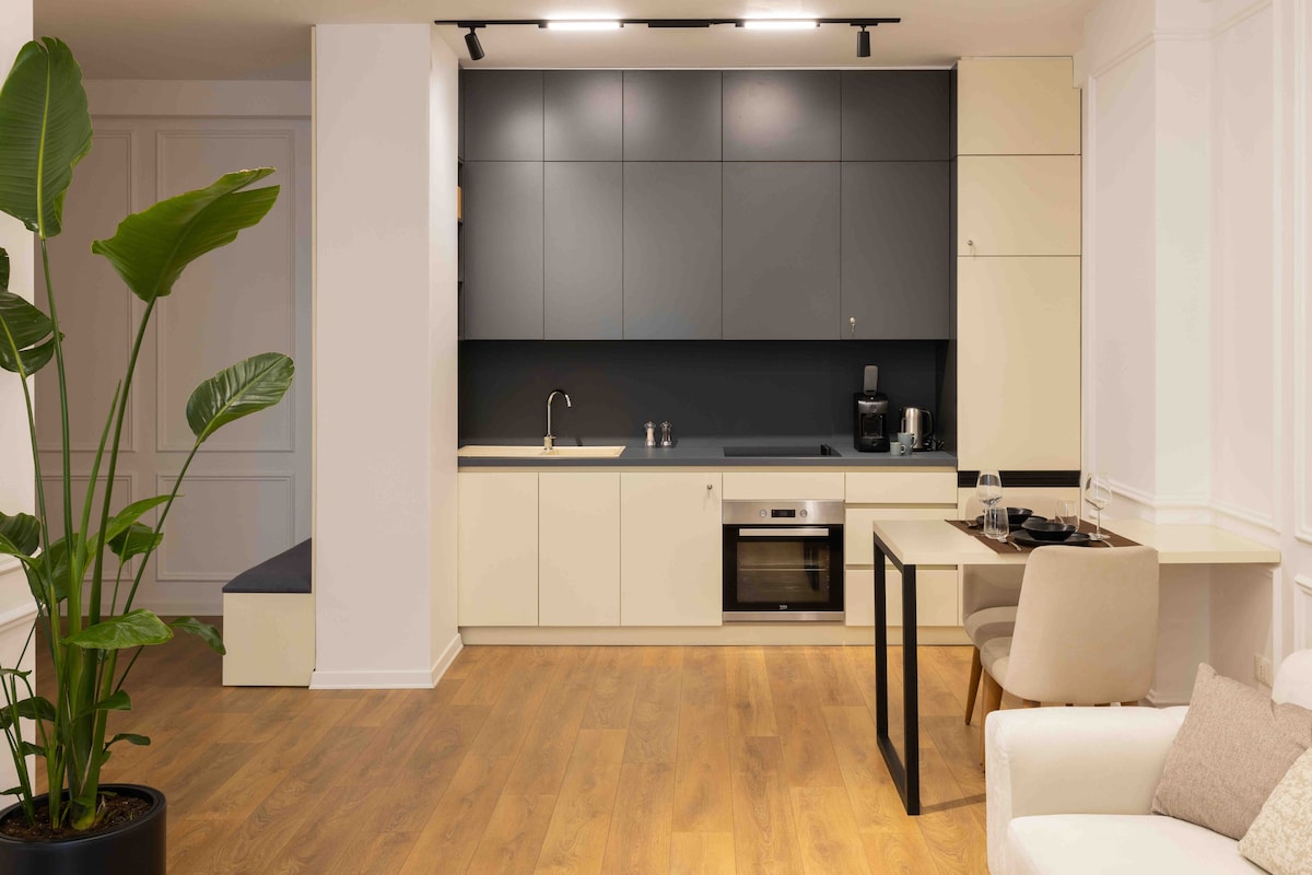Paris üslubunun müasir dəbdəbəyə cavab verdiyi inkişaf və sənətkarlıq dünyasına addım atın. Qəşəng qəliblər, zərif mebellər və təbii bitkilərlə bəzədilmiş bu mənzil zəriflik və cazibədarlıq məkanıdır. Meşə mövzulu freskanın gözəlliyindən zövq alın və məkana bir toxunuş əlavə edin. Rahat oturma yerində kitabla dincəlməyinizdən və ya balkonda bir qədəh şərab içməyinizdən asılı olmayaraq, hər an zəriflik və lütf havası ilə əhatə olunur.