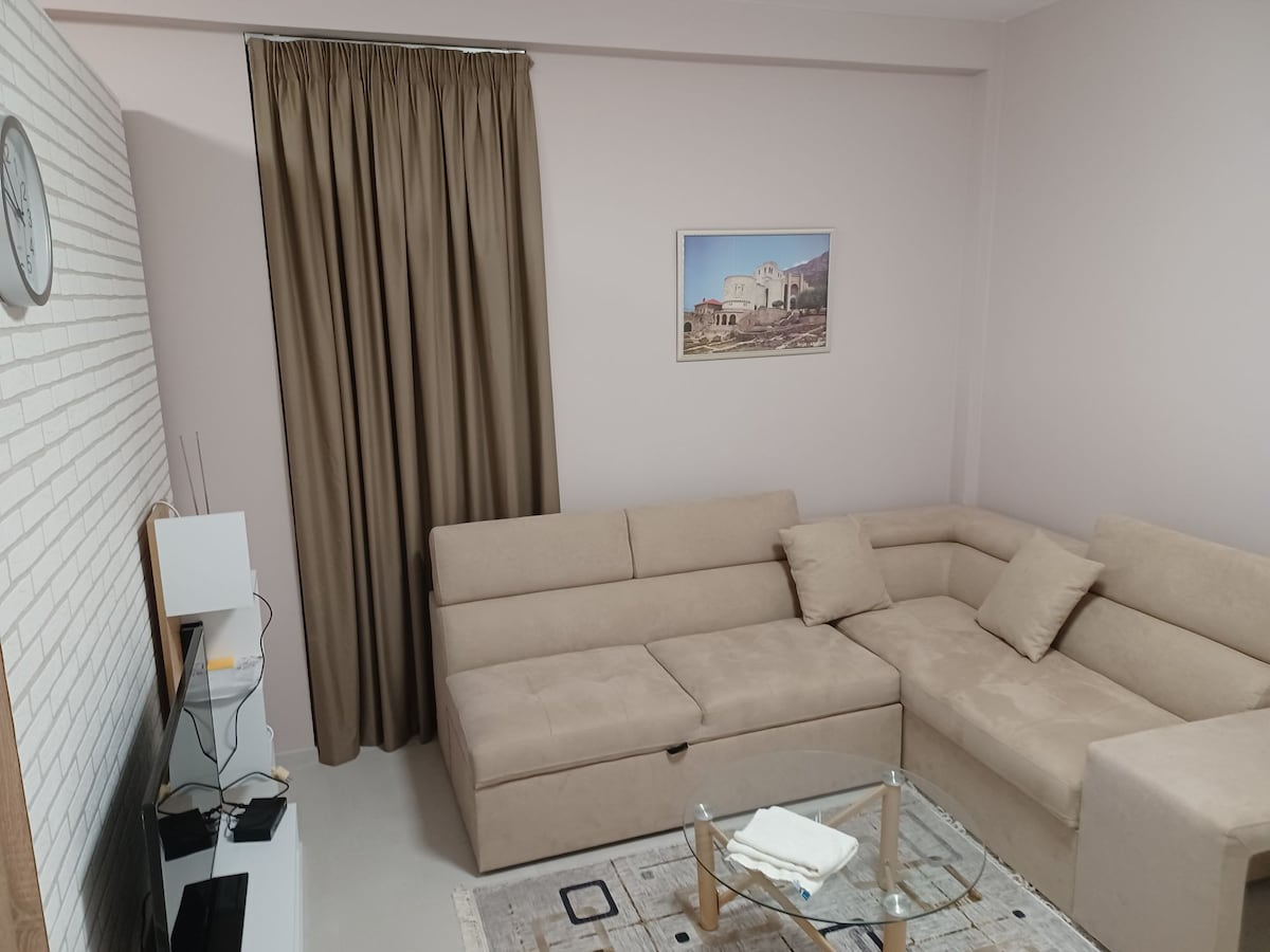 The apartment is situated 400 meters from Skanderbeg Square and features a living room with a flat-screen TV, a well-equipped kitchen with a dining area, a fridge, an oven, a microwave oven, a washing machine, a bathroom, and a large balcony. The bathroom is fitted with a tube, a bidet, free toiletries, a hair dryer and bathrobes. WiFi is available throughout the property and air-conditioning is available on living room and bedroom. One extra single portable bad available in the apartment.