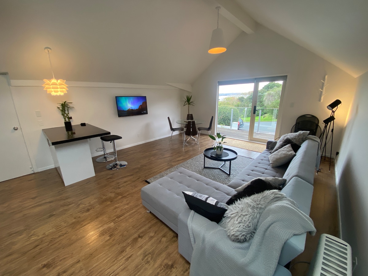 Luxury private apartment, with spectacular sea views and space to unwind and relax. Your top floor, provides 96 sq m of quality, comfort, privacy and security. The suite is separate from our living area, with your own private entrance. Walking distance to beach, shops, supermarket, and range of restaurants and cafes. Maximum guests; 2 adults . Not suitable for children of any age.