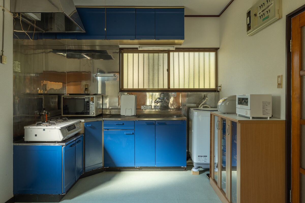 Bu, eksklüziv icarə üçün mövcud olan 128 kvadratmetrlik ikimərtəbəli evdir. Bura 13 nəfərə qədər qonaq qəbul edə bilər. Əmin olun ki, bu, digər qonaqlarla paylaşılan qonaqlama yeri deyil. 1F: Yemək otağı, yatmaq üçün 8 dəst futon, mətbəx, hamam otağı və tualet. Hamam otağına vanna üçün quruducu daxildir və paltaryuyan maşının qurutma funksiyası var. 2F: Bir yarım nəfərlik çarpayı, dörd bir nəfərlik çarpayı və tualet.