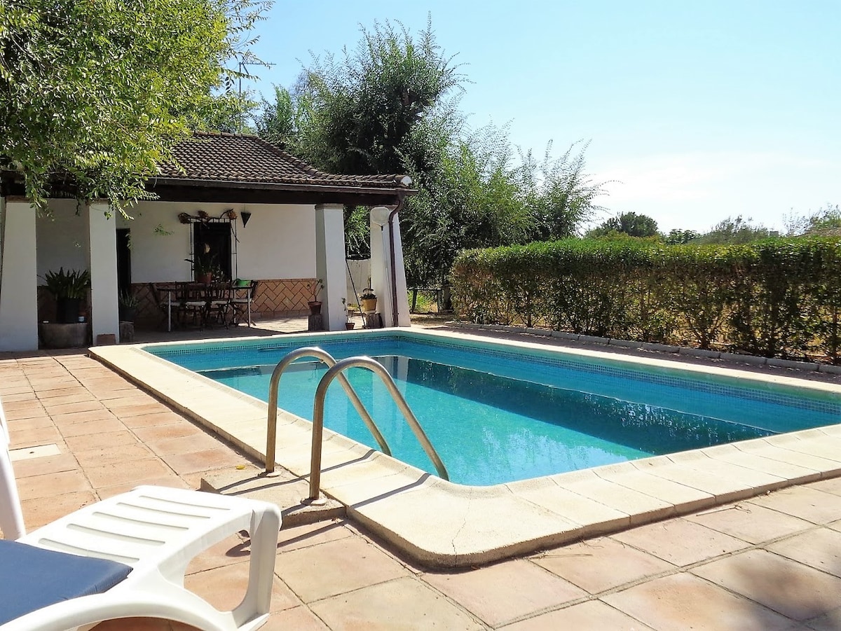 Preciosa casa de campo situada en lo alto de una colina, con vistas panorámicas de la Vega del Guadalquivir. El acceso hasta ella, se hace mediante un camino rural, IMPRESCINDIBLE llegar en coche. Chimenea de leña en el interior. Tiene una gran piscina con plataformas y escalones, ideal para que puedan jugar los niños sin peligro y tumbarse los adultos. Barbacoa de gas junto a la piscina y aire acondicionado centralizado.