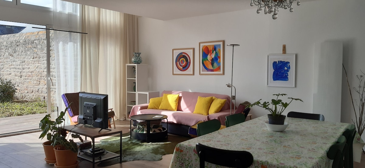 Fermanvildə, çimərlikdən 5 dəqiqəlik məsafədə yerləşən mavi velosiped, daş kottec bir cütlük üçün idealdır. 2023-cü ildə tamamilə təmir edilmiş evimiz köhnə daşların cazibəsini saxlamış körpəsi olan və ya olmayan cütlüyə ev sahibliyi etmək üçün idealdır. Tipik Cudan kəndinin mərkəzində yerləşən yürüyüş yollarının (GR223 və çimərliyə yaxın) başlanğıcında olacaqsınız. Kəndin sonunda yerləşməklə sakitlik və istirahət tapa bilərsiniz. Ayrıca terras, bağ mebeli olan meşəlik bağ, barbekü.