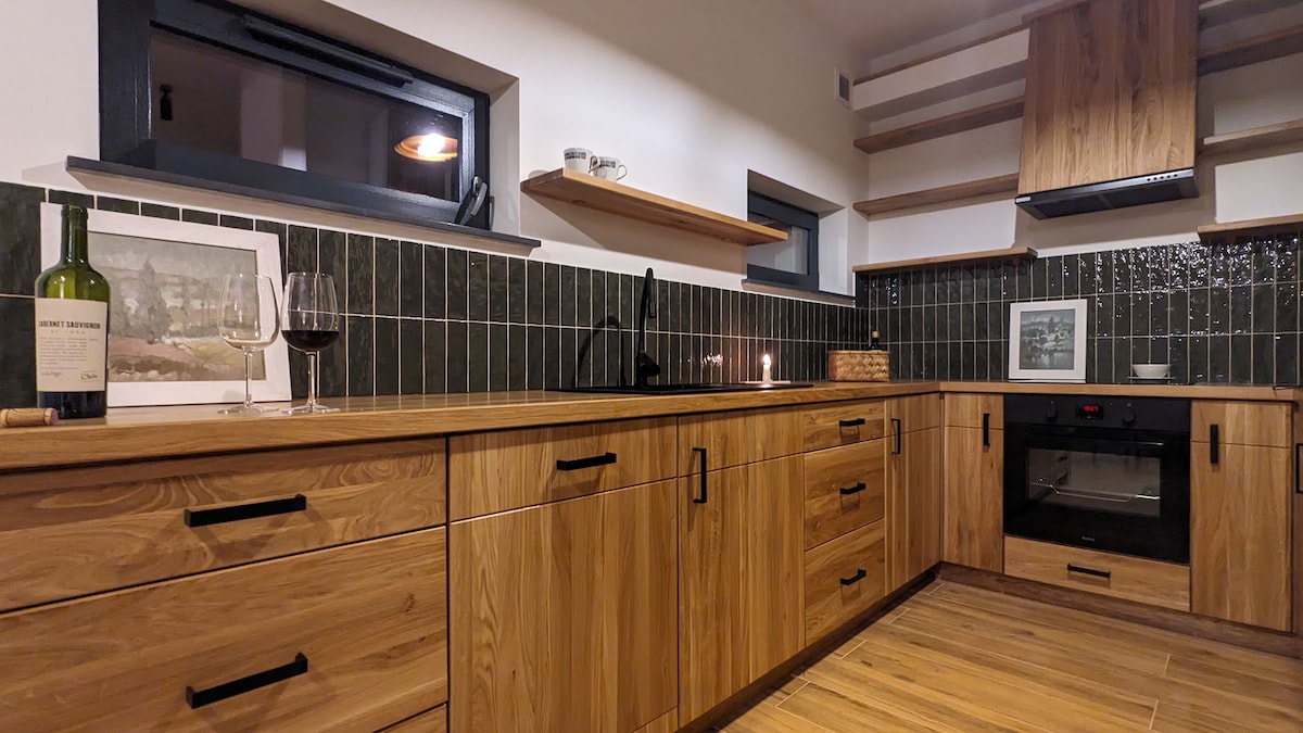 Taxta kottecimiz müasir və funksional şəkildə dizayn edilib. Ətrafa mükəmməl şəkildə qarışmağa və burada bizi əhatə edən təbiəti narahat etməməyə çalışdıq. Kiçik kəndimiz, zamana təslim olmadı, hər şey olduğu kimidir. Mağaza və ya restoran yoxdur, turistlər yoxdur, yalnız sakit və təbiət var. Kənd çəmənliklər və Piska Meşəsi ilə əhatə olunub, ən yaxın şəhərlərə 10 km məsafədə yerləşir. Kranlar və saysız-hesabsız su hövzələri sizi gündəlik tamaşaya dəvət edir. Burada rahatlıq tapacaqsınız