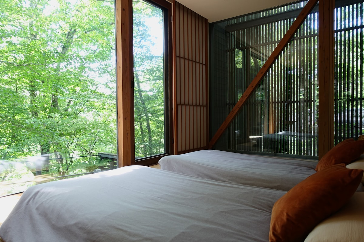 Bu, Naqano ştatının İizuna şəhərində 1300 metr (4265 fut) hündürlükdə təmtəraqlı meşəlik ərazidə yerləşən dəbli giriş kabinəsidir. Ev cütlüklər, ailələr və ya kiçik qruplar üçün mükəmməl istirahət yeridir. Burada odun sobası, böyük televizor, Blu-ray/DVD pleyer, stereo, dəri stullar və tam mətbəx var. Ərazidə yürüyüş, xizəksürmə, barbekü, qolf və ya isti bulaqdan zövq alın. Ev JR Hokuriko Şinkansen güllə qatarı və Şinano Dəmiryolunda Naqano Stansiyasından təxminən 20 dəqiqəlik məsafədədir.