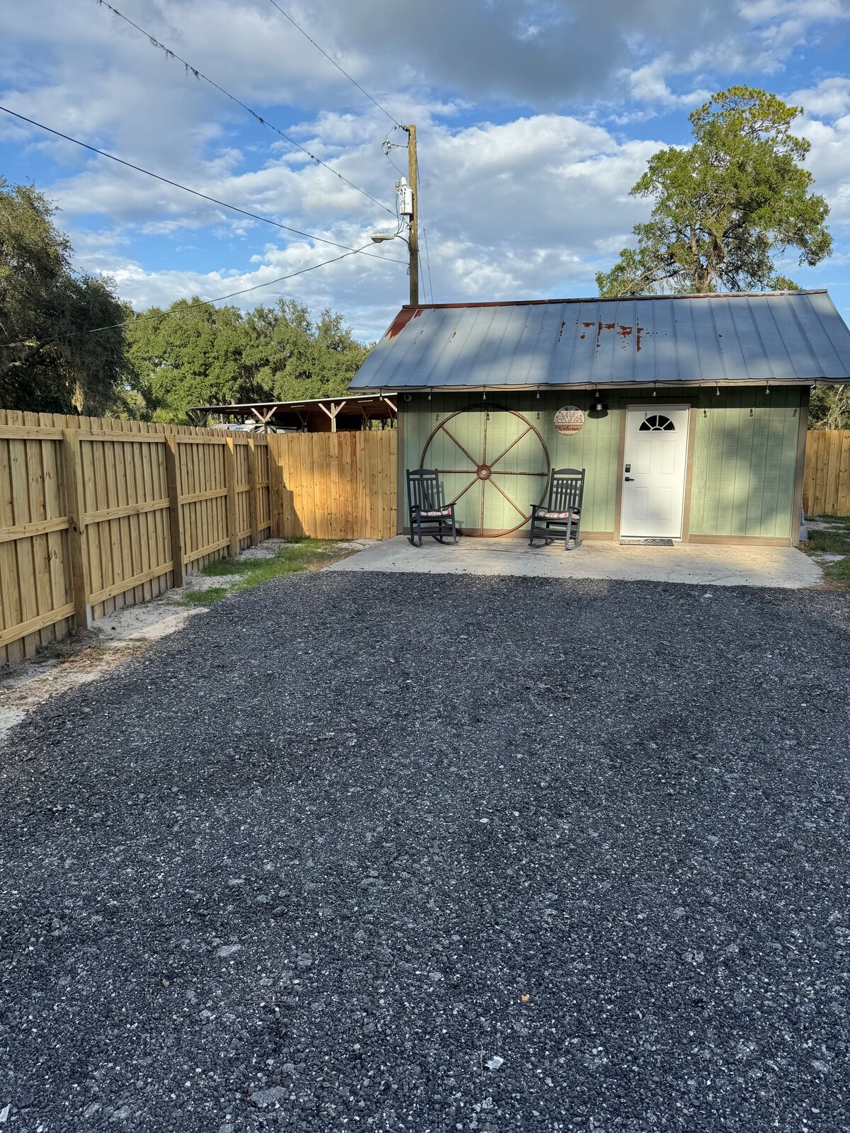 Ocala Milli Meşəsində yerləşən 10 hektarlıq ərazidə yeni təmir olunmuş 1 otaqlı mənzil. BR-da 150-179 sm-lik çarpayı, qonaq otağında tam divan çarpayı. Subaylar, cütlüklər və kiçik ailələr üçün mükəmməldir. İçəridəki məkan işıqlı və şəndir. İçərisində soyuducu, mikrodalğalı soba və toster sobası, əla Wi-Fi və TV seçimləri olan balaca mətbəx var. Açıq havada uzanmış eyvan; soba sobası olan qaz manqalında yemək bişirin; böyük piknik masasında yemək yeyin; odunla təchiz edilmiş od çuxurunda düşərgə gecələrindən zövq alın.