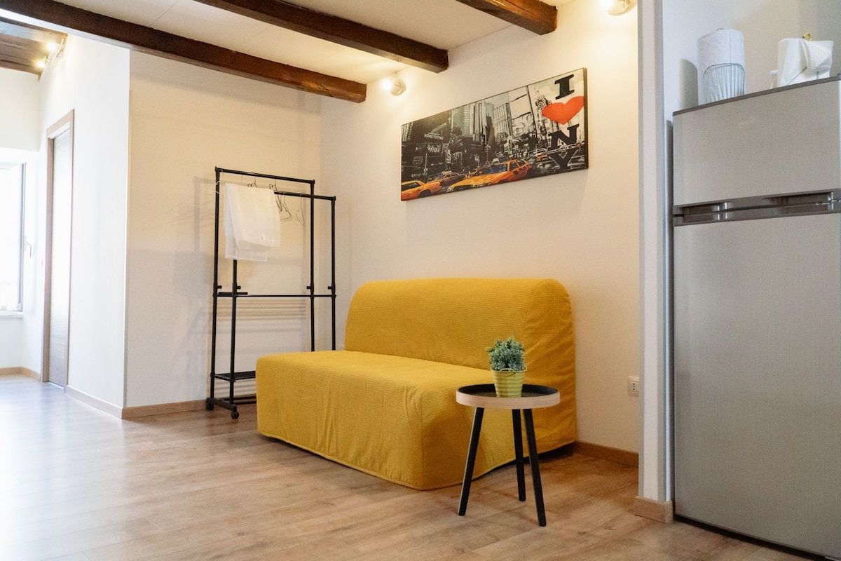 Romanın Marino bələdiyyəsində gözəl studiya mənzili. Burada yataq otağı və bir uşaq üçün kempinq çarpayısı, balaca mətbəxi, hamam otağı və barbekü olan gözəl ayrıca bağı var. Buradan Romaya getmək asandır, qatar stansiyası cəmi 300 m məsafədədir və 25 dəqiqəyə Termini stansiyasına çatırsınız. 200 m məsafədə sizi A metrosuna və Kastelli Romaninin möcüzələrinə aparacaq avtobus dayanacağı var. Ciampino Hava Limanına cəmi 4 dəqiqə qalıb uşaq gündə daha 5 € ödəyir