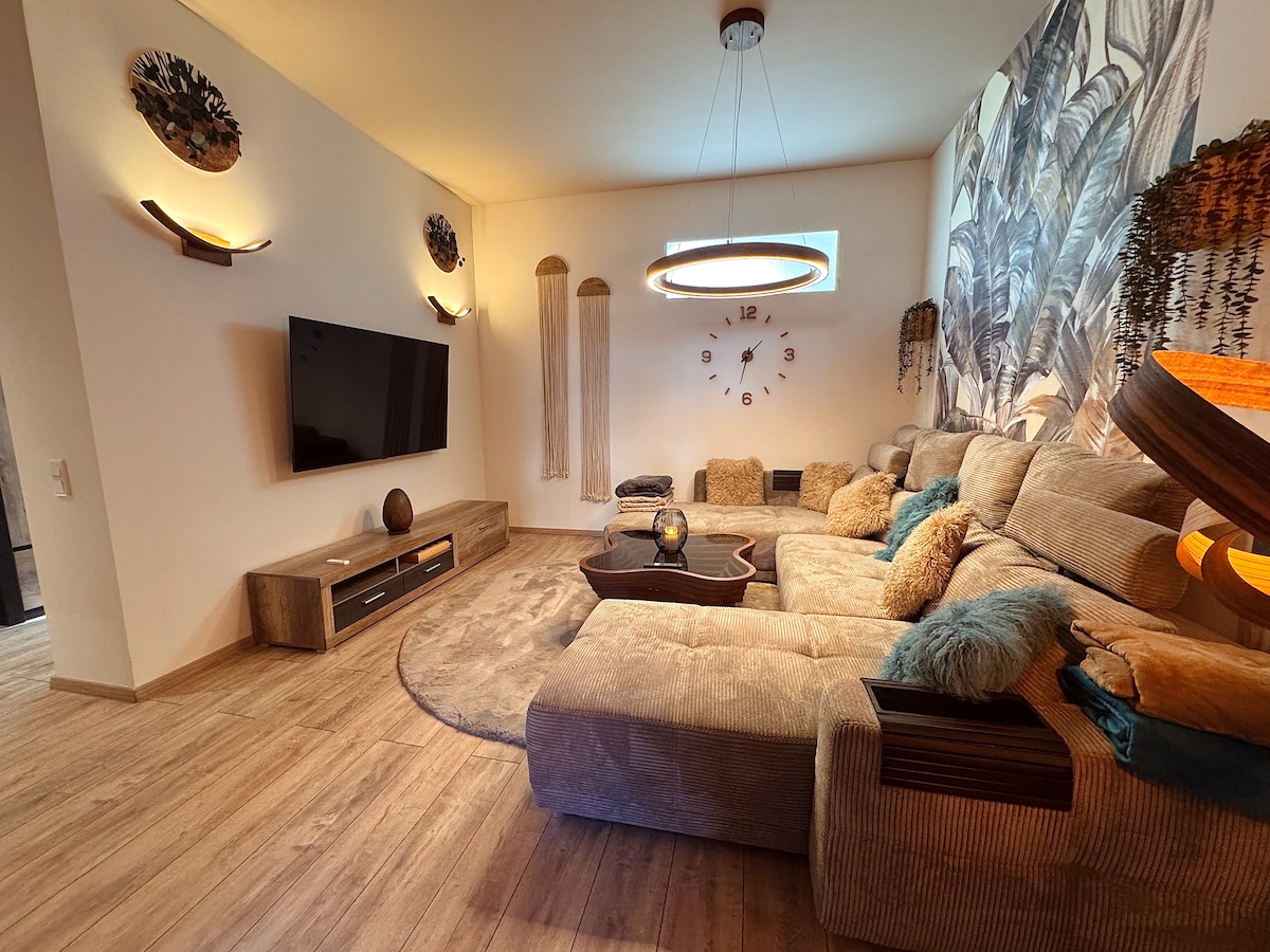 Hörmətli bayram qonaqları, sizi Hausdülmendəki rahat mənzilimizdə qarşılamaqdan məmnunuq. Yuxarı mərtəbədəki balkonlu mənzil tam təchiz olunub, velosipedlər üçün elektrik doldurma stansiyaları olan qaraj, avtomobil dayanacağı və zirzəmi otağı mövcuddur. Axınları, gölləri olan müxtəlif mühit sizi gəzintilərə və velosiped gəzintilərinə dəvət edir. Təbiətə və davamlılığa önəm veririk.