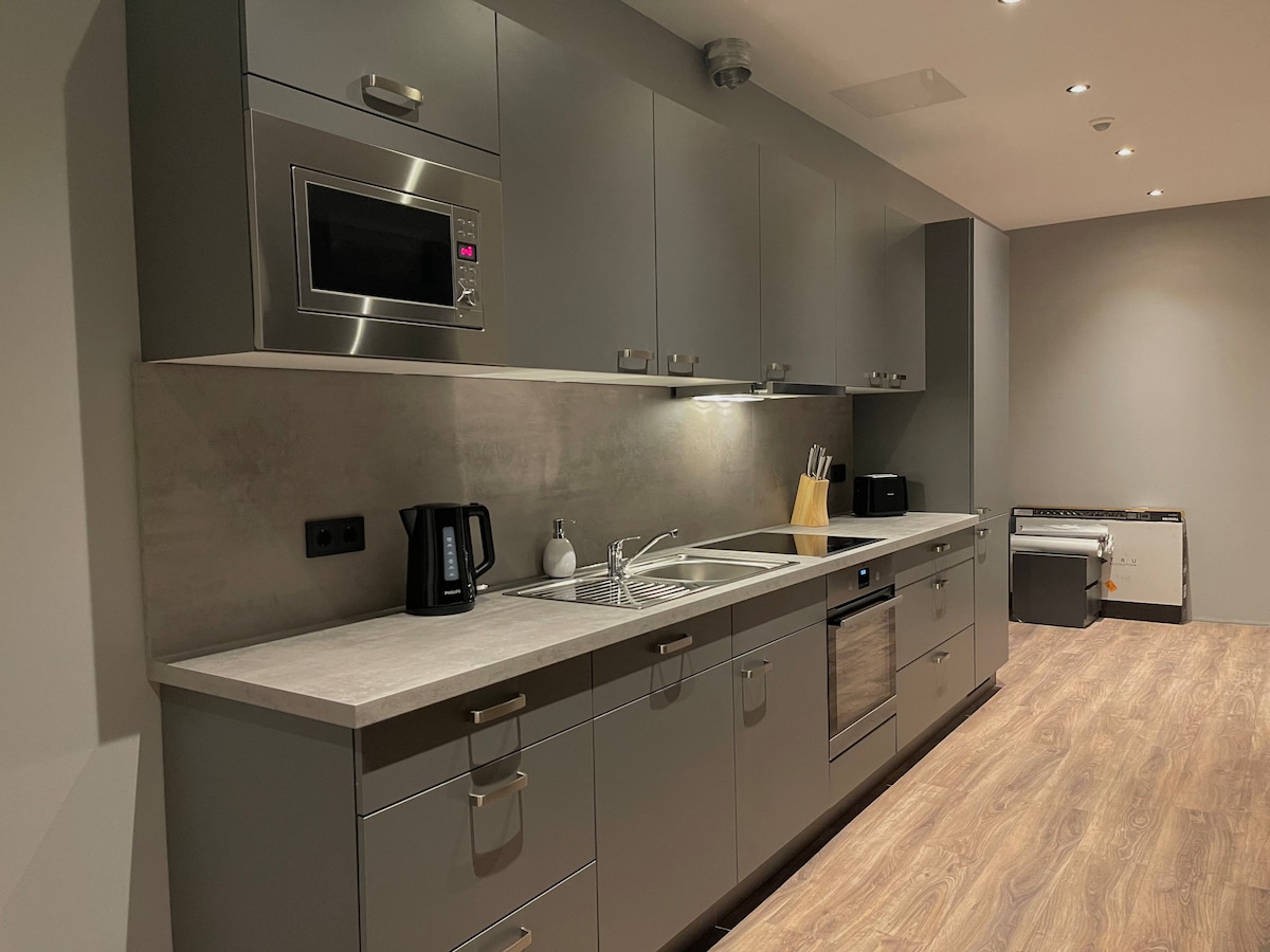 This 80sqm apartment comprises living and dining room, bedroom, kitchen and bathroom. Bedroom: - 160cm box spring bed - Lamps with USB charging connection - first aid kit - dumbbells - Baby crib - Desk + whiteboard, flipchart - Bed linen included Living/dining room: - Sofa bed (160cm mattress) - 65" TV - fireplace Kitchen: - Fridge/freezer - Gas stove / oven - Dishwasher - coffee - microwave Bathroom: - Shower - Hair dryer - Towels included The parking lot is under video surveillance