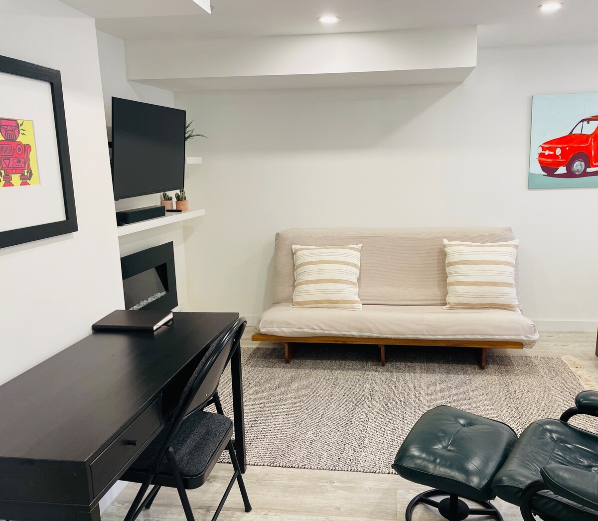 Torontonun ağacdan salınmış West End-də xüsusi klaviatura girişi olan zirzəmimiz işləmək üçün şəhərə gələn turistlər və ya insanlar üçün idealdır. 2025-ci ilin əvvəllərində sevəcəyiniz 1950-ci illərin vintaj səyahət ab-havası ilə tamamilə təmir edildi. Yeni hamam otağı, 150-179 sm ölçülü çarpayısı (ENDY döşəyi) olan tam ayrı yataq otağı, televizor, masa, üstəlik buxarı və divan çarpayısı olan qonaq sahəsi. Mətbəx/camaşırxana da var. Ceyn metrosuna piyada 3 dəq. 1 aşağı şüa ilə 6'5"tavan. Yuxarı mərtəbədə yaşayırıq - mənzil səs-küy izolyasiya edilib.