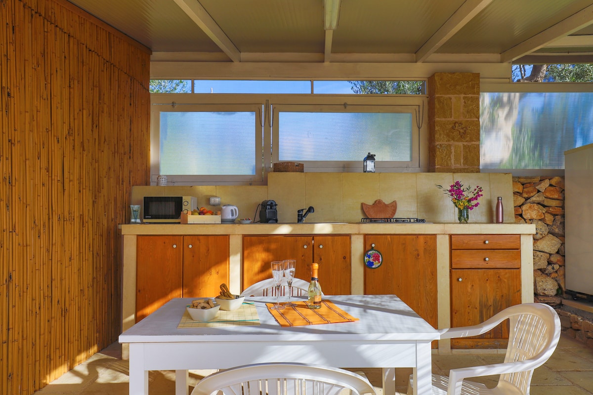 SANTA MARIA DI Leuca BÖLGƏSİNDƏ yaşıllığın ORTASINDA YERLƏŞƏN ŞƏXSİ TƏTİL EVİ KOMPLEKSİNDƏ TAM QONAQLAMA TƏKLİF EDİRİK. Panoramik və havalandırılan mövqe. Dənizə və gözəl gün batımlarına baxan böyük terras. Ev Pescoluse çimərliyindən yalnız üç dəqiqəlik məsafədə olsa da, "Salentonun Maldivləri" adlı kristal təmiz suyu olan uzun qumlu sahil xətti olsa da, böyük xüsusi zeytun gövdəsi çox sərbəstlik və sakitlik təklif edir.