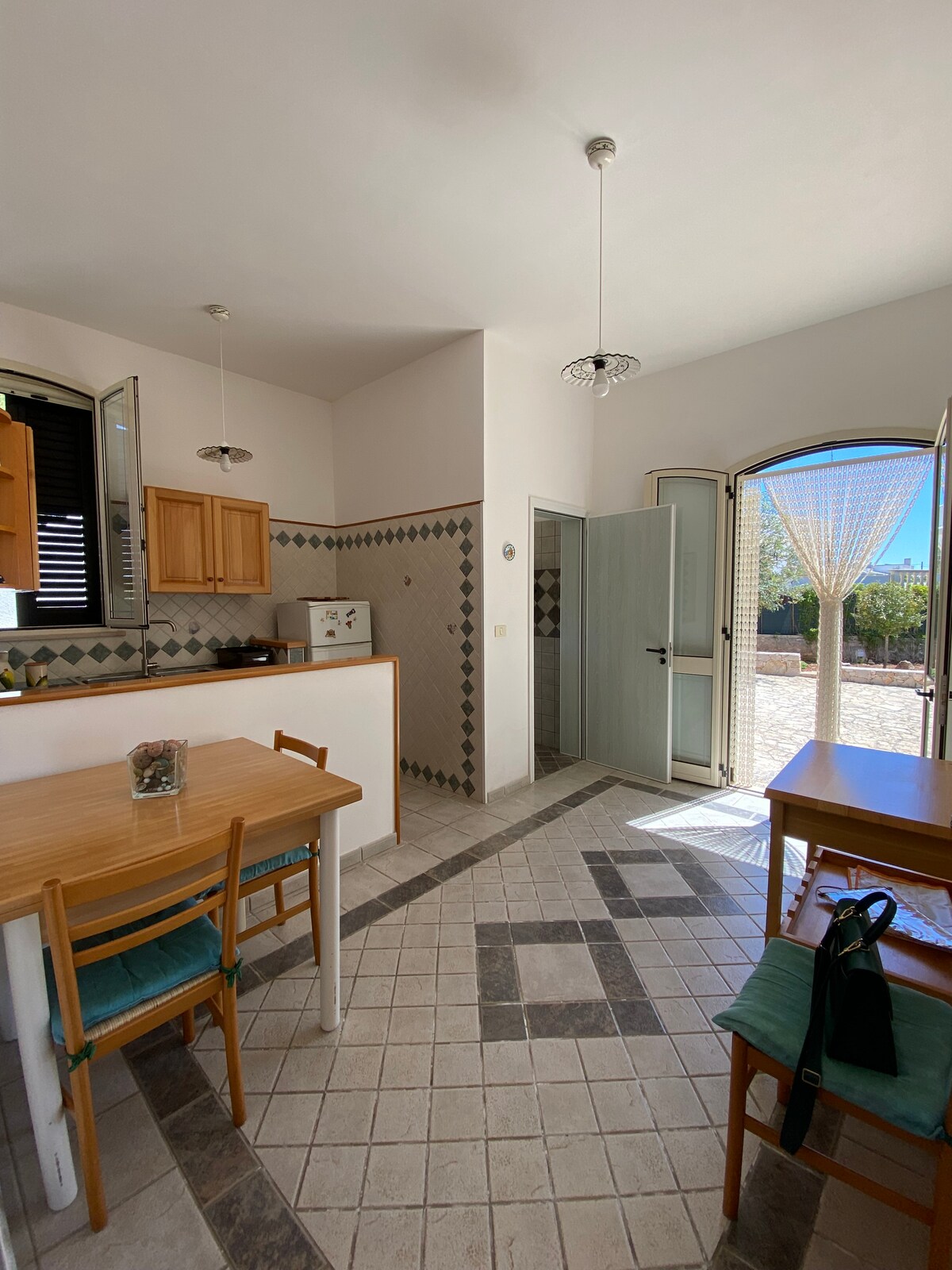 Loc.Ciardo, vicinissima al mare, villetta indipendente e riservata con accesso da strada privata. L'alloggio dispone di ampi spazi esterni e posti auto, due camere da letto, salottino con tv, angolo cottura e sala da pranzo, bagno interno con lavatrice. All'esterno: zona doccia con secondo wc, barbecue con lavabo e terrazze vista mare e circondate dal verde. Dotata di Wi-Fi, climatizzatori e zanzariere nelle camere da letto. A 5 minuti in auto dal centro di Leuca e 15 dalle Maldive del Salento.