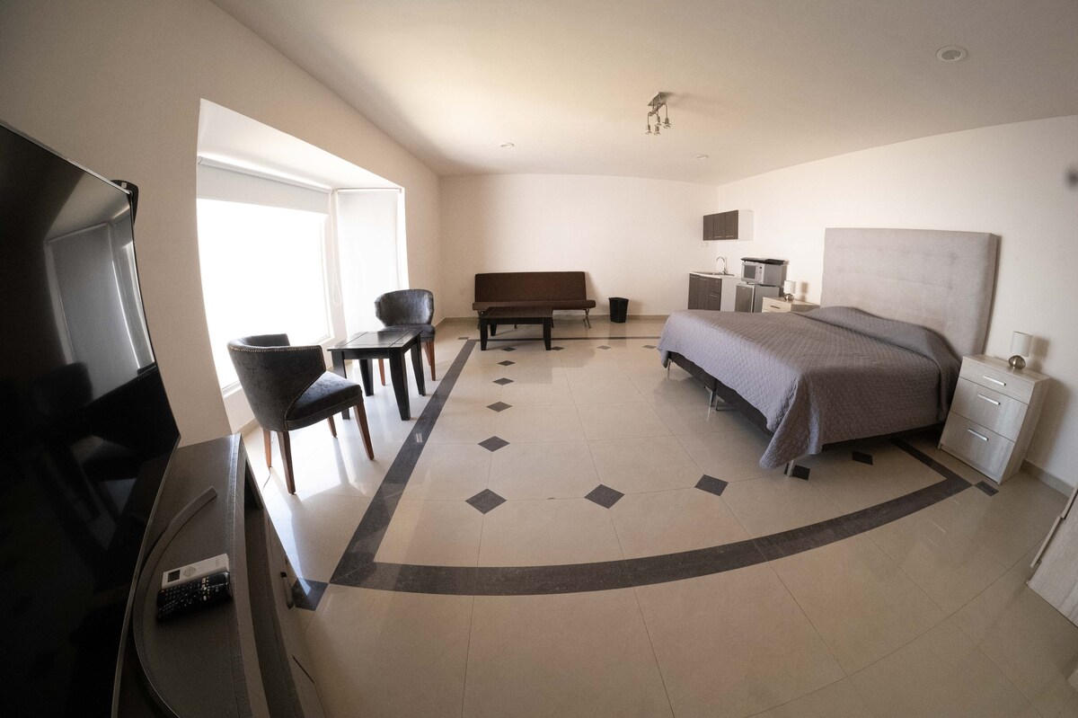 Super rahat və komfortlu loft! IMSS yüksək ixtisasdan 3 blok, Otel otağında olduğunuzu hiss edəcəksiniz! Juarez prospektindən bir blok məsafədə yerləşən biznes və restoranlarla məsafədədir. Loftda Netflix istifadəçisinə daxil olmağınız üçün Wi-Fi, təzyiqli su və ağıllı televizor var.