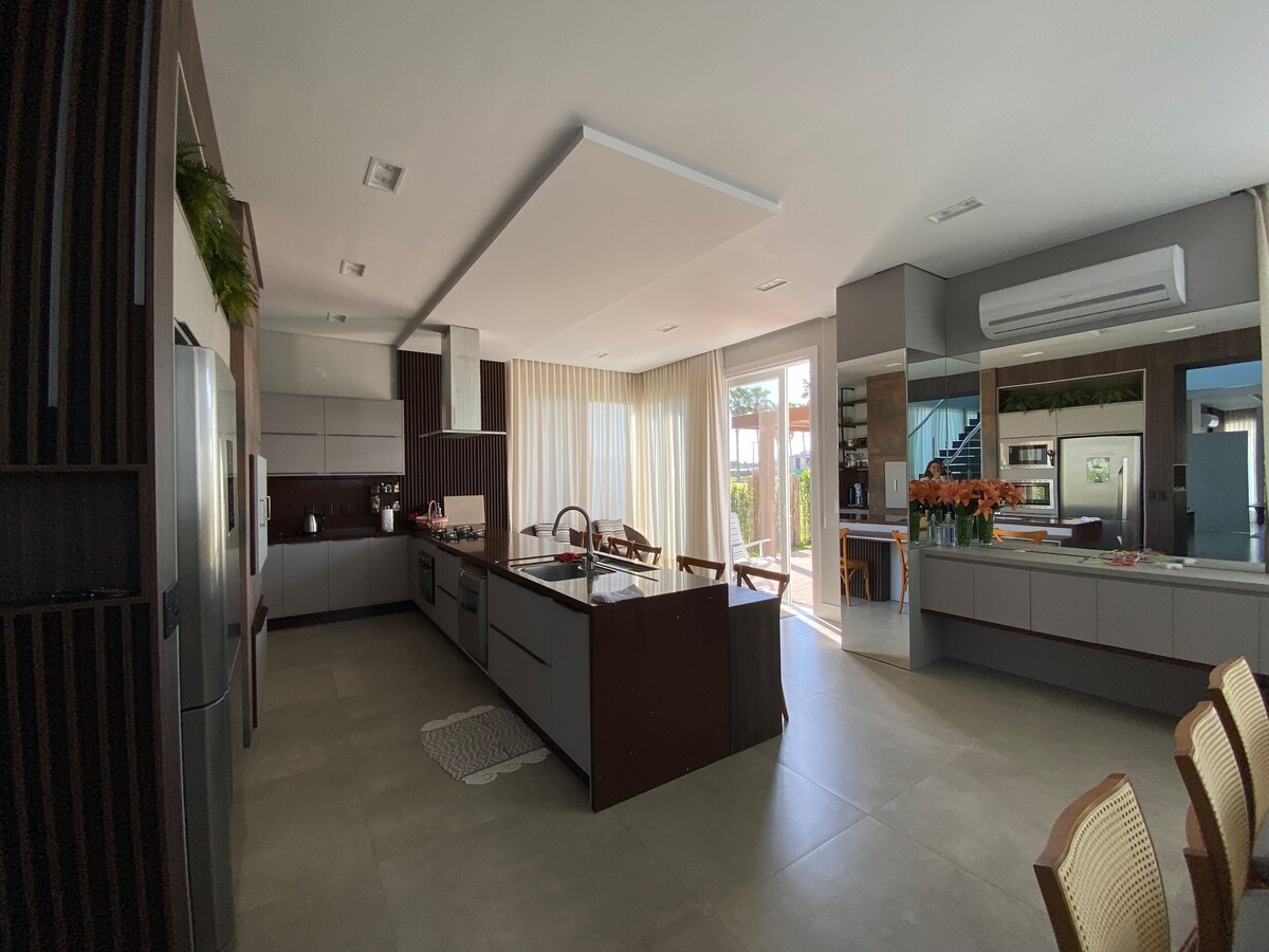 Torres RS-də, gölün qarşısında, təchiz olunmuş və ilin sonuna yaxın şənliklərdən rahat və sakitliklə zövq almağa hazır olan lüks çimərlikyanı kondominiumda mebelli ev. Tam quruluşu, qumda ayaq, qolf maşını, çimərlik xidməti, ayaq üstə dayanmaq üçün göllər, tennis kortu, çimərlik tennisi, avarçəkmə, futbol, voleybol, açıq hovuz, qurman sahəsi, restoran, uşaq məkanı, idman zalı, velosipedlər, bazar və 24 saat təhlükəsizliyi olan kurort təcrübəsi. Ailəniz üçün unikal təcrübə.