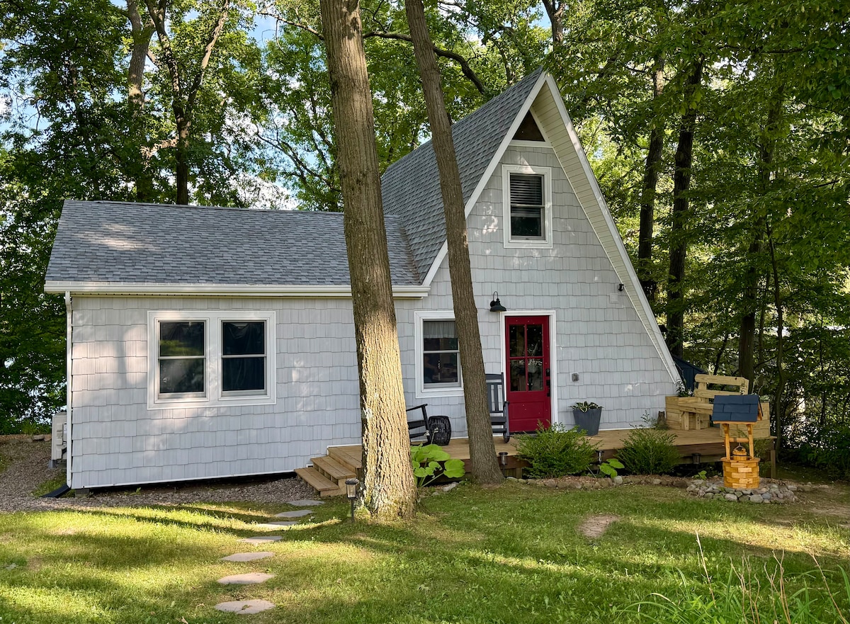 Located in the heart of the Finger Lakes on the west side of Seneca Lake, this charming A-Frame cabin is perfect for a lakeside getaway. This open & airy retreat is in a desirable location right on the Seneca Lake wine trail. You'll enjoy sweeping panoramic views from any room in the house. Offering plenty of space to get comfortable in, some of our amenities include a large deck overlooking the lake, a beach cabana and a brand new dock. Relax, unwind and make yourself at home.