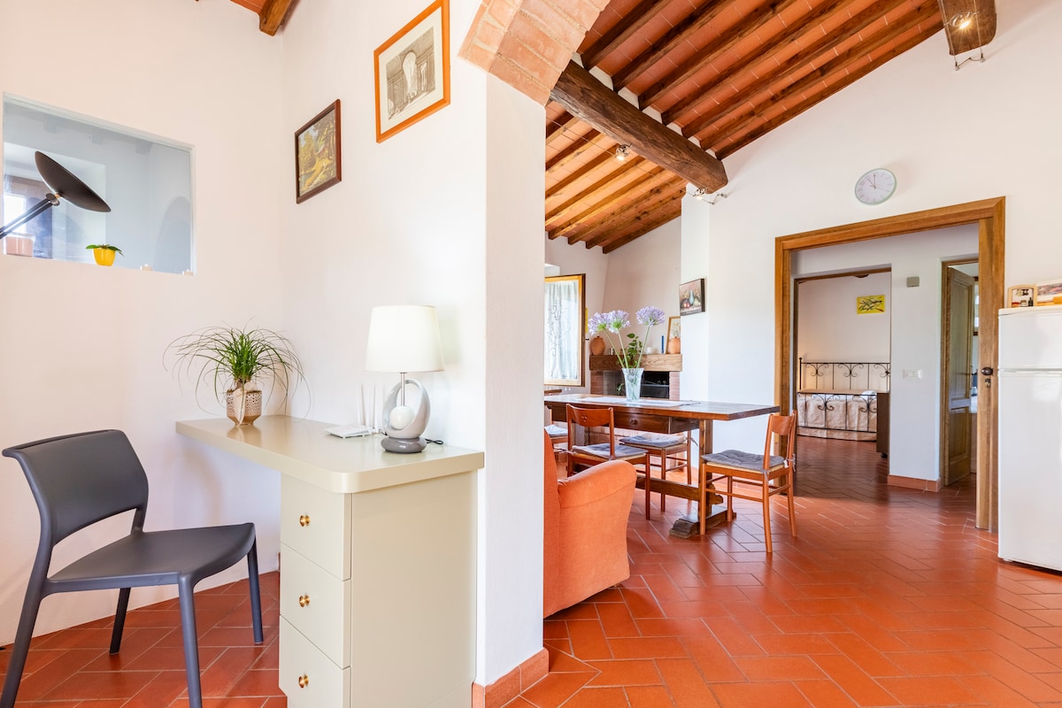 Toskananın mərkəzində yerləşən mənzilin zinət əşyası. Sərv və zeytun ağacları üzərində heyrətamiz mənzərələr. Beamed tavanlar, mərmər döşəmələr, hamısı bu yaxınlarda təmir olunub. Mənzilə antik taxta çarpayı və Venesiya işıqları daxildir. Gözəl mənzərələrdən zövq alaraq günəş şezlonqlarının barbekü və kölgəli yemək məkanının təmin edildiyi öz şəxsi bağınızda "Al Fresco" da dincələ və yemək yeyə bilərsiniz.