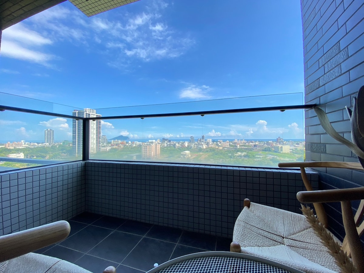 此房源位於高層樓,就如你/妳所看到的標題《海景房》可以仰望蔚藍天空,遠眺那無邊無際的大海,享受陽光的溫暖,夜晚時,幾艘漁輪燈光照亮海面好像一閃一閃的小星星。 我們的公寓位在一處安靜的住宅區中,步行約300米可輕鬆抵達海岸自行車道與海灘。可以在附近濱海步道優閒散步騎乘腳踏車漫遊吹吹海風聽聽海浪聲或晨起看龜山日出,附近烏石港遊艇碼頭可以登龜山島出海賞鯨,還有國際著名蜜月灣可以衝浪和頭城著名海鮮美食可品嚐。