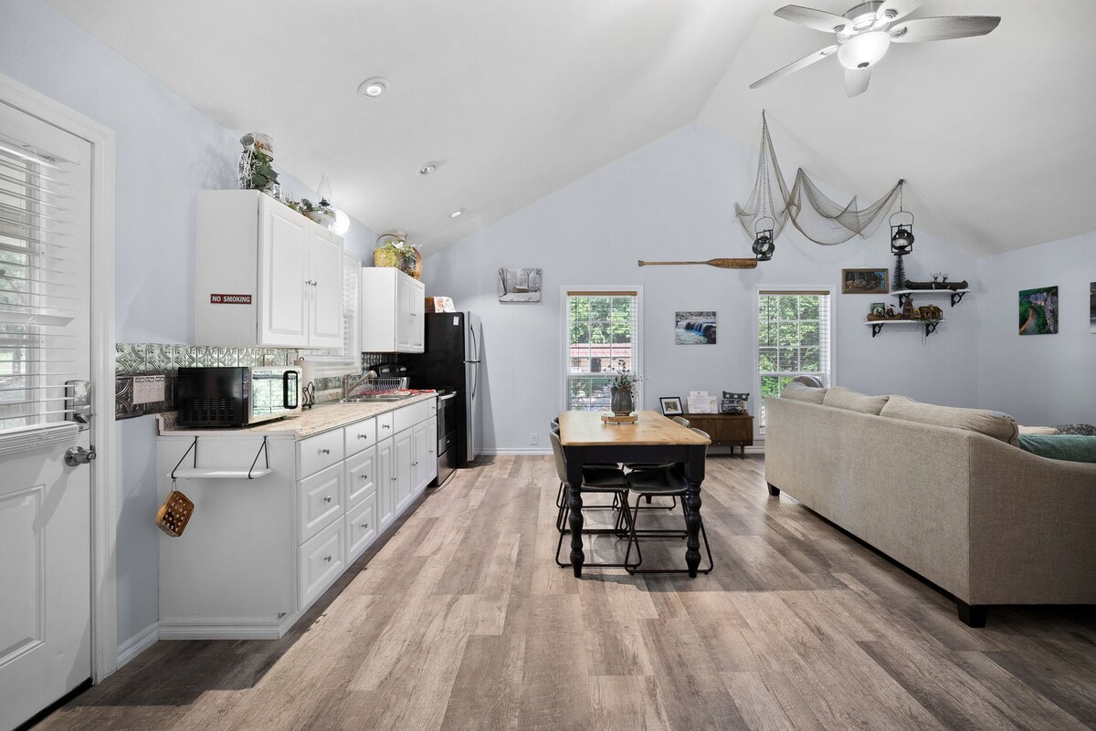Qapınızın bir neçə addımlığında cığırları olan Ozarklarda oyanın. Hemmed-in-Hollow Falls-a gəzintiyə çıxın, buxarı ətrafında ulduzları seyr etməkdən zövq alın və 8-ə qədər yatan geniş 3BR/2BA kabinəsində dincəlin Həftəsonu gəzintiləri, ailə səfərləri və ya dostların sərgüzəştləri üçün mükəmməldir — Wi-Fi-dan tutmuş odadavamlılığa qədər ehtiyacınız olan hər şeylə təmin edilib. • Buffalo çayı mənzərəli əmlakdan Antenna Şamına 15 dəqiqəlik yürüyüş • Kabinədən 13 mil məsafədə 10 populyar yürüyüş yolu, 3 camış çayına giriş və hər kəsə baxış