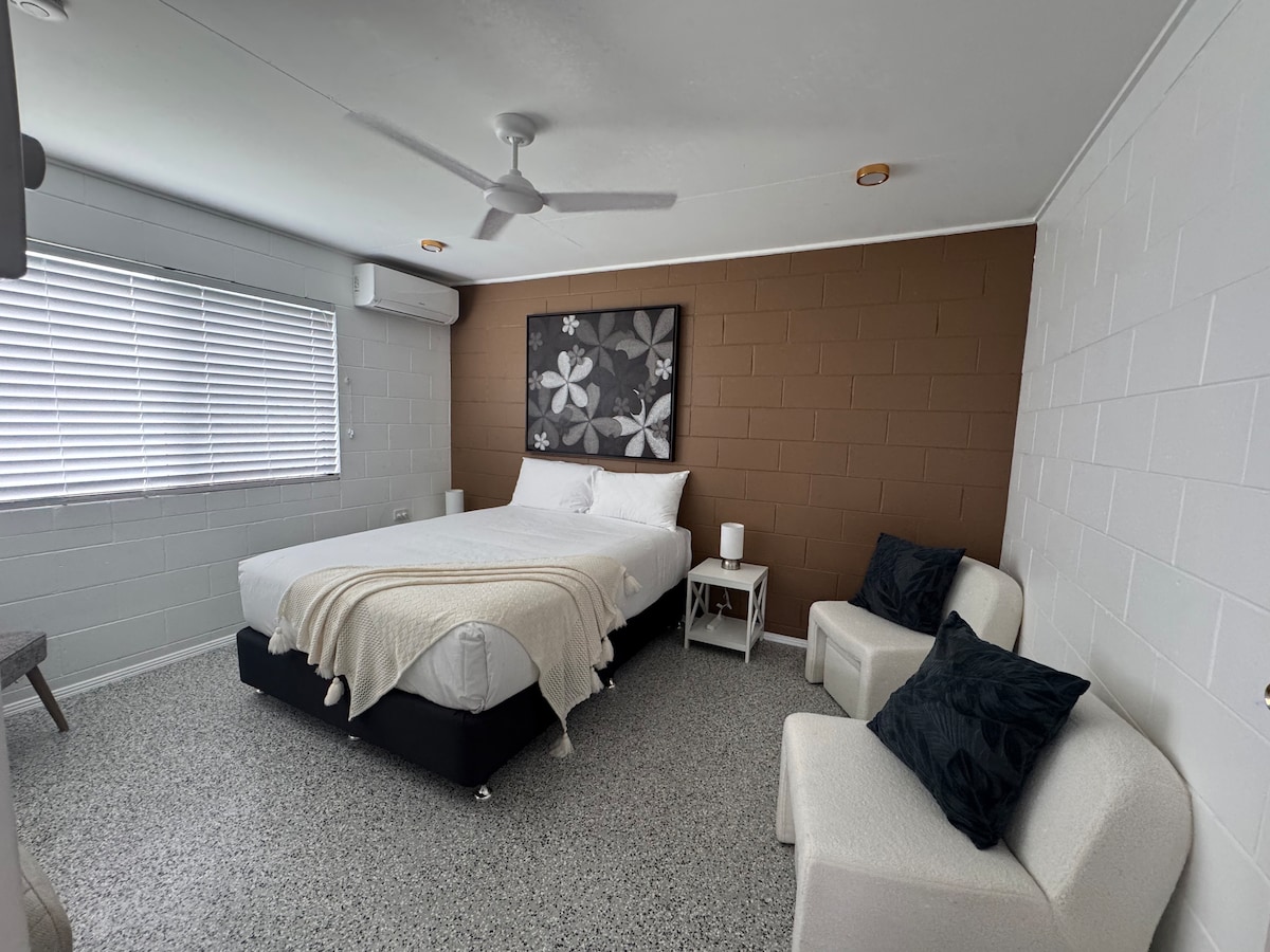 Gatehouse by the Gardens is a private, fully self-contained apartment where you can arrive with just your suitcase; everything else awaits. Relax in the wet room style bathroom with rain and handheld showers, then enjoy your complimentary continental breakfast in the air-conditioned living space or on the private tropical deck with BBQ, generous seating and peaceful garden views. It’s the perfect base to rest, recharge and explore Townsville.