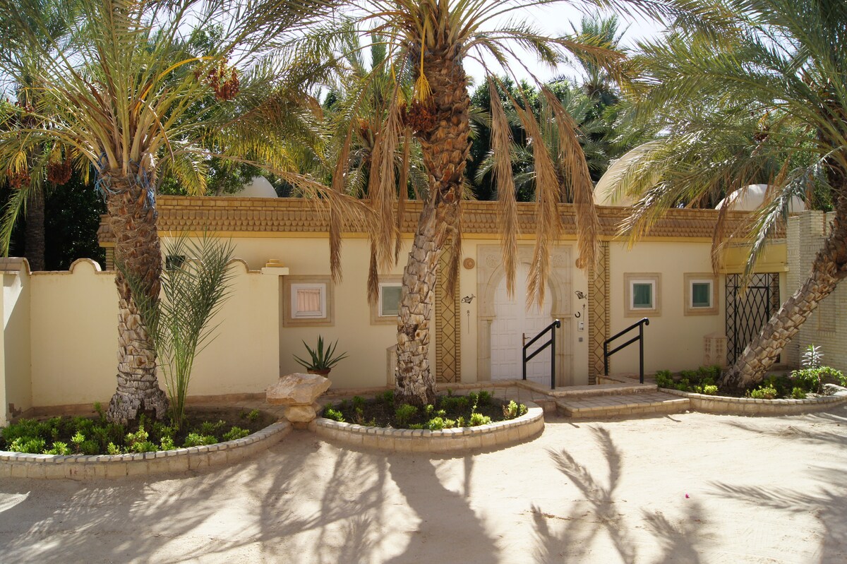 Radhia tərəfindən ✨ Palm Retreat Şəhər mərkəzindən cəmi 15 dəqiqəlik məsafədə, vahənin mərkəzində yerləşən sakit rustik məkana qaçın. Palmalar və yumşaq təbii işıqla əhatə olunan bu rahat bir yataq otaqlı istirahət məkanı ənənəvi Tunis füsunkarlığını müasir komfortla birləşdirir — ulduzların altında dincəlmək və yatmaq üçün mükəmməl bir yerdir.