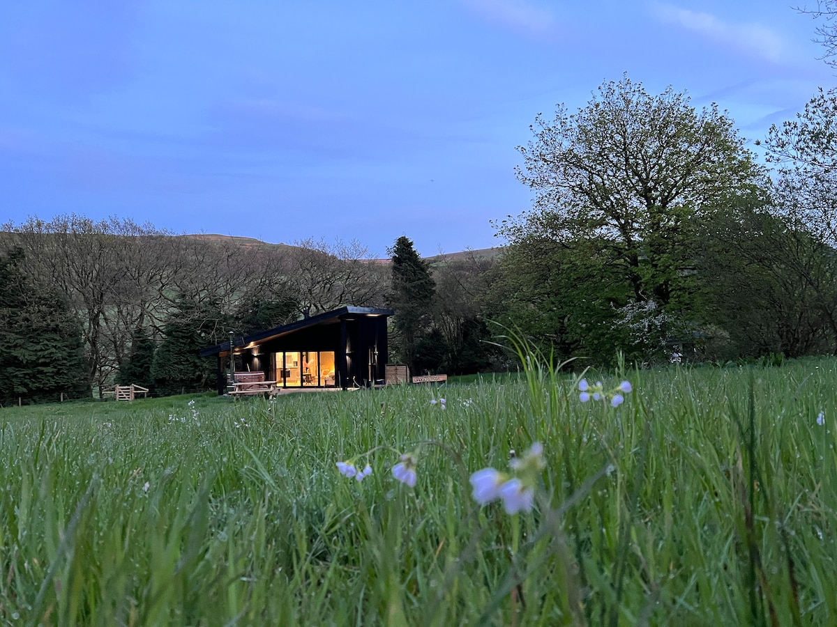 Discover total peace and solitude in this newly built lodge on a 250 acre organic farm. The hot tub is wood fired and filled with fresh well water. It's perfect for a secluded, romantic getaway at any time of year. It's also family friendly. You have access to the whole farm. You can hear the rushing mountain stream behind the cabin. Children and pets love to paddle in the streams on the farm. It's on it's own in a meadow - accessed by a stone track with mountain views in all directions.