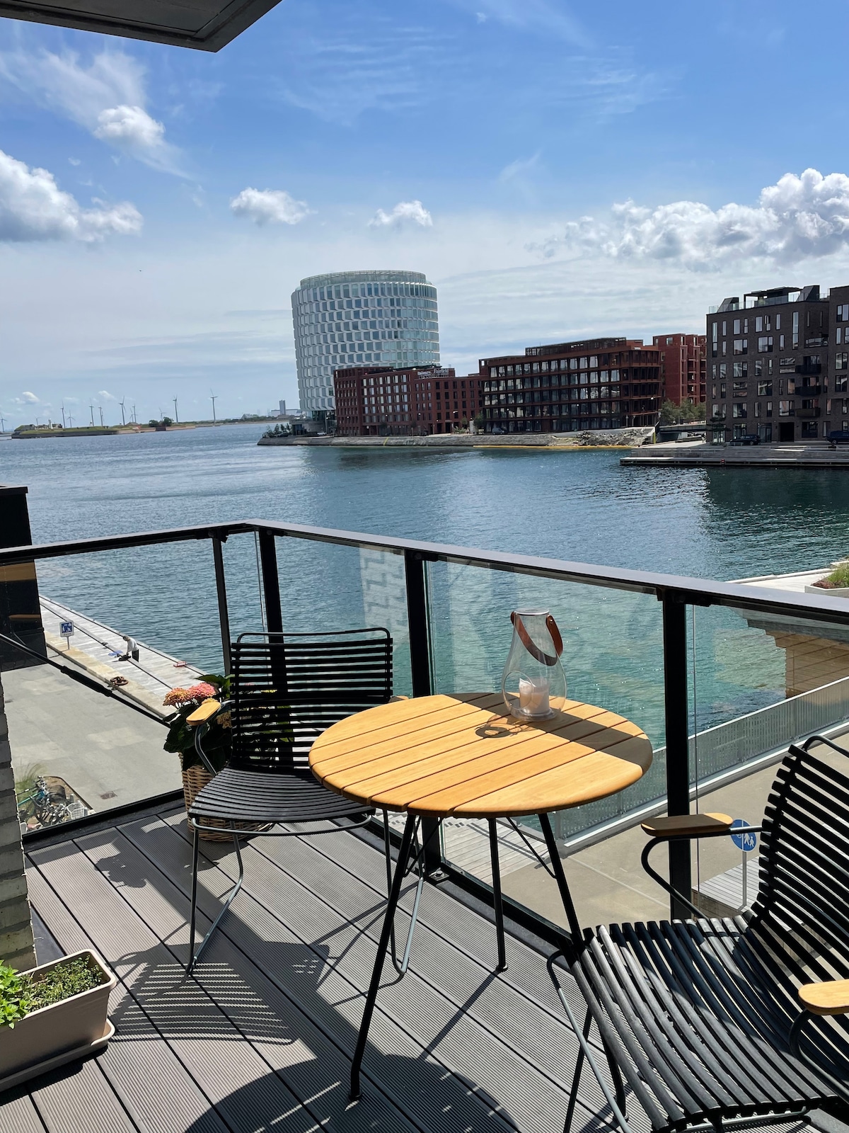 Suyun yanında yeni və müasir mənzil. Mən özüm mənzildə yaşayıram və işgüzar səfərdə və ya səyahət edərkən onu icarəyə verirəm. Səhər yeməyi üçün masası olan manqal və stulları olan böyük balkon var. Nordhavn Kopenhagendə yeni və müasir bir ərazidir. Üzgüçülük, günəş vannası qəbul etmək və hətta üzən sauna üçün sahə var. Metro dayanacağına 300 metr məsafədə (Orientkaj dayanacağı). Şəhər mərkəzinə metro ilə 10 dəqiqəlik, velosipedlə isə 15 dəqiqəlik məsafə var. Østerbroya qədər piyada məsafə (kafe, restoran olan köhnə məhəllə)