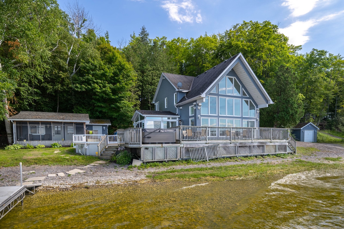 Escape to this beautifully updated lakefront home on 170ft of private shoreline in beautiful Prince Edward County. Enjoy our new panoramic view sauna, hot tub and outdoor shower. This relaxing getaway is located on the Bay of Quinte, just 2hrs east of Toronto. A 30 min drive to Sandbanks, 20 mins to Picton/Wellington. Close to many wineries and breweries. Large yard space makes this an ideal home for groups, couples and families looking for postcard views and private spa amenities. ST-2023-0002