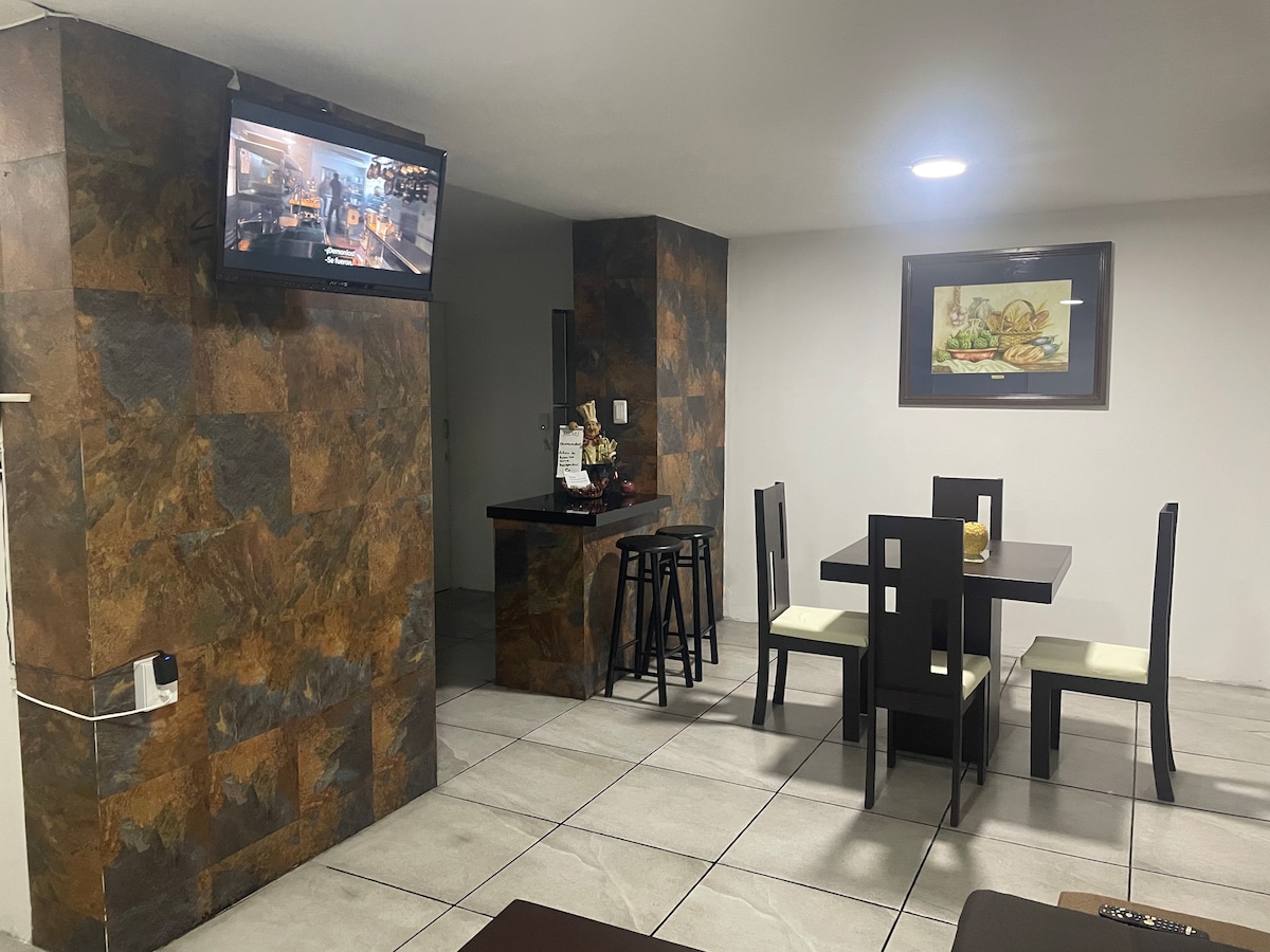 Bu sakit və dəbli məkanda dincəlin. Sala və Kamerada Minimalista Bitkiləri, Televizorunuz var. Alış-verişiniz üçün soyuducu. Barda bir qədəh şərabdan və Parota masasındakı aperitivdən zövq alın. Centrodan 15 dəq, Angelopolis ticarət mərkəzindən 10 dəq, oxxo ilə muncuqlar küçəyə və parkdan 2 küçə uzaqlıqda səhərlər qaçış üçün darıxmayanlardan biri olduğunuz halda.