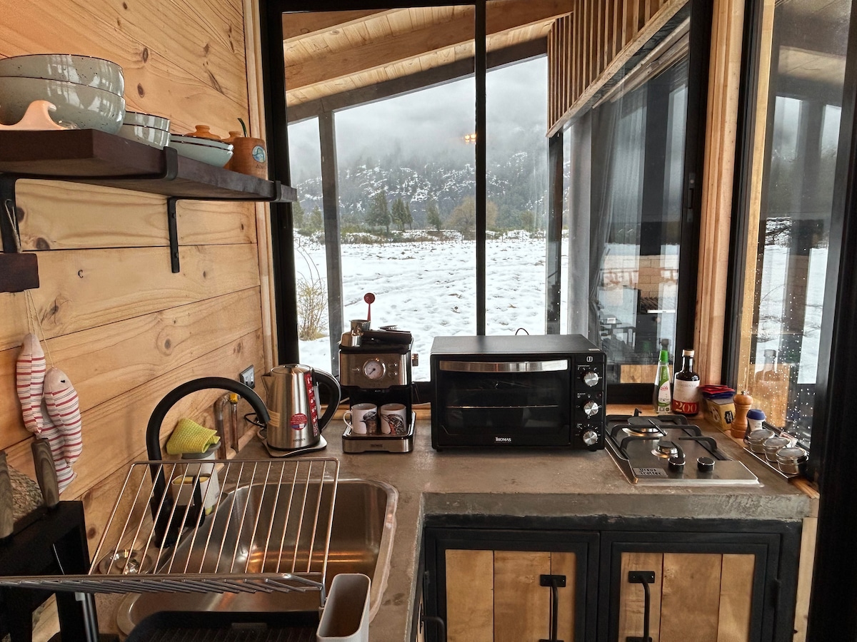 Futaleufú-da Espejo Lagoon, Wi-Fi və parkinq mənzərəsi olan kabinə. Taxta isitmə sistemi, təchiz olunmuş mətbəx, minibar və isti suyu olan ayrıca hamam otağı olan 2 nəfər üçün idealdır. İmtiyazlı mövqe: laqunla üzbəüz və şəhər mərkəzinin pillələri. Məxfilik və sakitlik Kabinə turistlərə icarəyə verilməyən digər iki binanın olduğu xüsusi ərazidə yerləşir. Bu, eksklüziv və təhlükəsiz məkandan zövq almağınızı təmin edir.