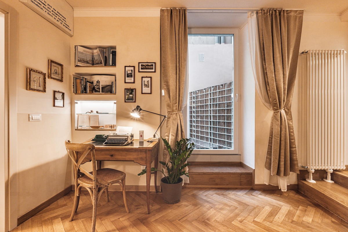 Casa Saba Triest 900 'ün tarixi binasının birinci mərtəbəsində, mərkəzi Via San Nicolò Umberto Saba Antiquarian Bookshop-un qarşısında, görməli yerlərlə dolu bir piyada ərazisində yerləşir. 2024-cü ildə təmir edilmiş terraslı yaşayış yeri şairin fiquruna hörmət edir və şəhəri ən yaxşı təmsil edən Triest yazıçısının təkliflərini toplayır. Olivetti Studio yazı makinası da daxil olmaqla, istifadə etdiyi ilə eyni olan çox xüsusi əşyalar tapa bilərsiniz.