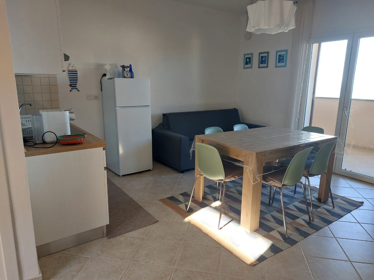 Dənizə və gün batımına baxan böyük verandalı, yenicə təmir edilmiş, Marinedda, Cala Rossa Li Feruli gözəl çimərliklərindən bir neçə dəqiqəlik məsafədə iki otaqlı mənzil.... Bir yataq otağı, təchiz olunmuş mətbəxi olan qonaq sahəsi, yemək sahəsi, 1/2 uşaq üçün uyğun divan çarpayısı, paltaryuyan maşını olan saxlama otağı, böyük mebelli veranda və ayrıca parkinq yeri. 2 böyük və 2 uşaq üçün idealdır. Evin altında ərzaq/ərzaq mağazası, supermarket 3 km məsafədə, yaxınlıqda bar/bistro. Birinci mərtəbədə, bağı olan bənzər mənzil.