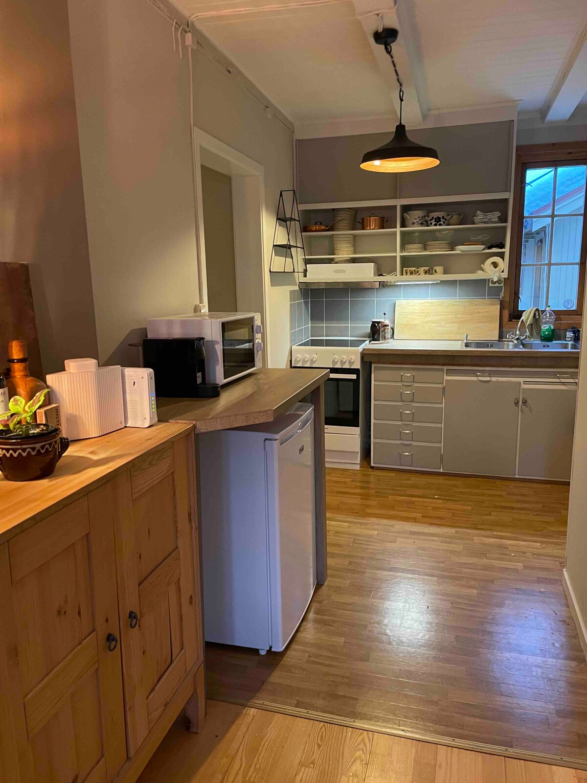 Svorkehuset Mətbəx, qonaq otağı, vanna otağı, yataq otağı və paltarlar və avadanlıqlar üçün geniş yeri olan dəhliz. Yataq otağında 120 sm-lik çarpayı və qonaq otağında 180 sm-lik divan-çarpayı var. Şimal işıqlarını görmək üçün bütün istiqamətlərdə yaxşı görünməsi olan Veranda. Ev sahibi normalda mənzildə yaşayır, lakin ilin qısa bir hissəsini qonaqlar üçün açır. Qonaqlama müddətində ev sahibi aşağı mərtəbədə yaşayır və praktiki məsələlər və məlumatlarla bağlı asanlıqla kömək edə bilər.