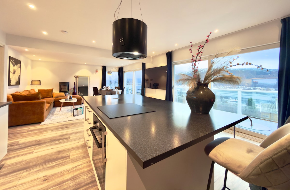 Şəhərin üstündə böyük pəncərələri olan 3 mərtəbə ev. (Türk buxar otağı Spa var) Dam üstü terras sizə ətrafdakı bütün dağlara 360 mənzərə açır. Bundan başqa, gecə Şimal işıqlarına heyran olmaq üçün mükəmməl şərait. Ev Tromsör şəhərinin sentrumundan 1,2 km aralıda yerləşir, evə (5dəq sentruma qədər) yerləşir. 1 mərtəbədə 2 yataq otağı (4ppl) və qonaq otağında böyük divan (yataq) var. 3-cü mərtəbə Terrasa girişi olan paltaryuyan maşın və quruducudur. Unikal taxta üslub, 70m2