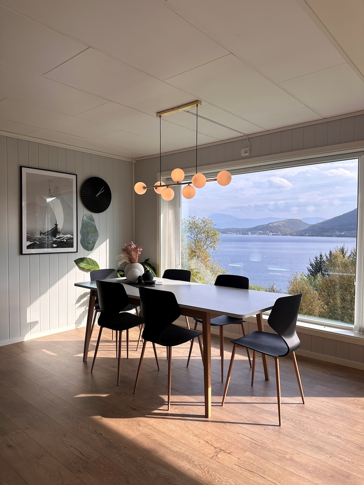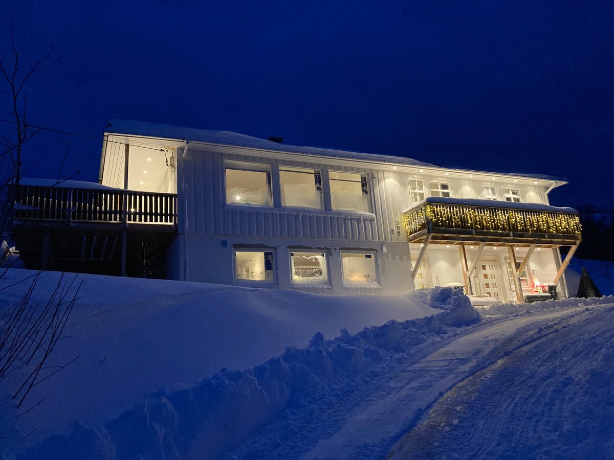 Spectacular new build house (2018) in a lovely, quiet area with a beautiful view to the fjord/sea, mountains and forest in Kvaløya /Tromsø. You can watch the beautiful northern light / aurora borealis from the huge window (10 sqm), sitting in the living room with a cup of tea or coffee in your hand:-) This is a perfect place for tourists who wants to see the northern light, whales in the fjord at winter, hiking/ skiing in the mountains or everything else you want in this lovely city.