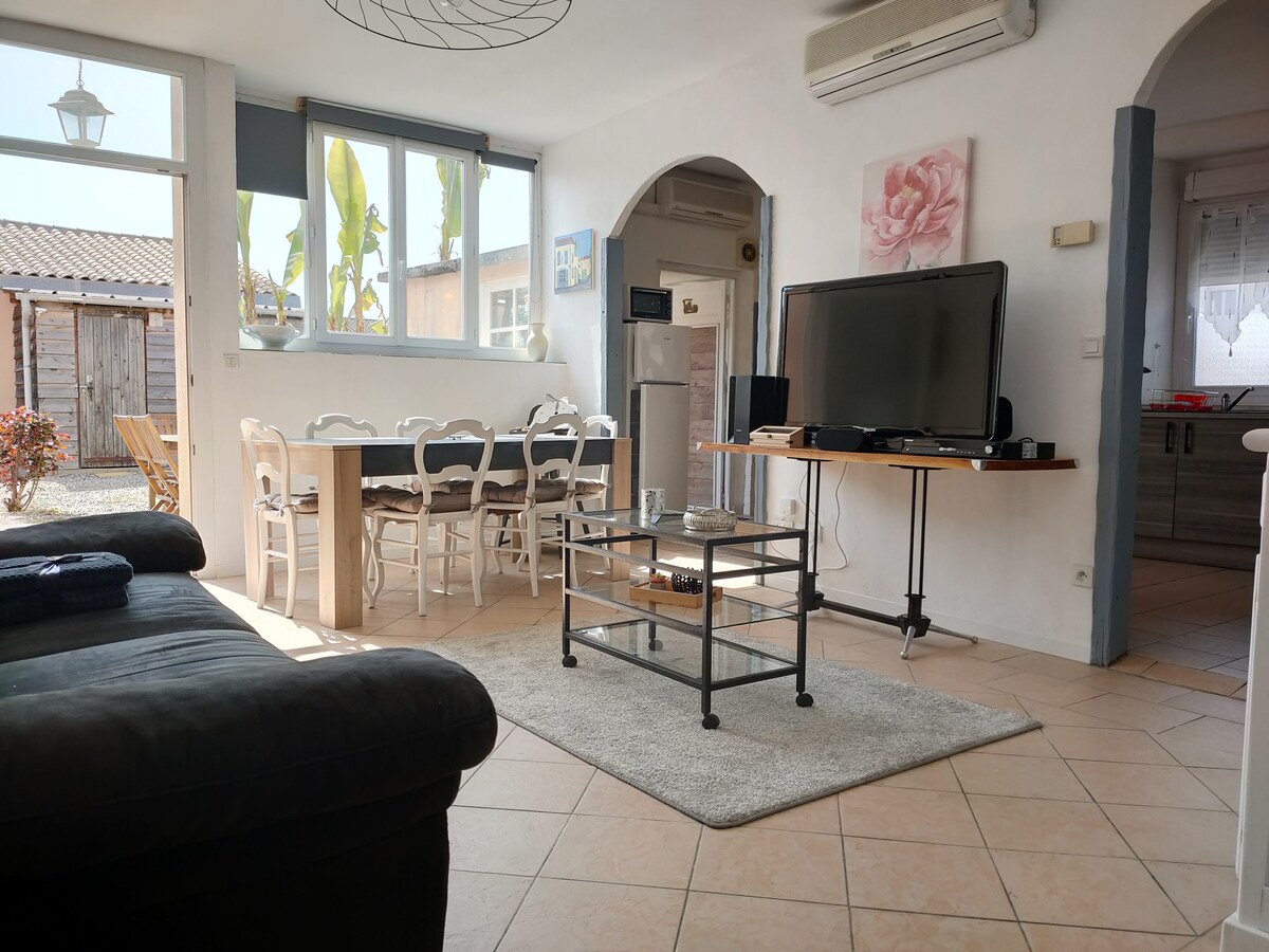Ölkə evində yerləşən, lakin tamamilə müstəqil olan mənzil. 2016-cı ildə tikilib, işlək və tam təchiz olunub: soba, mikrodalğalı soba, soyuducu, elektrik sobası, paltaryuyan maşın... Saxlama dolabı olan yataq otağını ayırın. Çiçəkli və xoş açıq hava məkanı. Sığınacağın altında ərazidə pulsuz parkinq yeri var. Kəndin sakitliyindən zövq almaq istəyən, eyni zamanda Pireney və müxtəlif mədəni tədbirlərə yaxın insanlar üçün idealdır.
