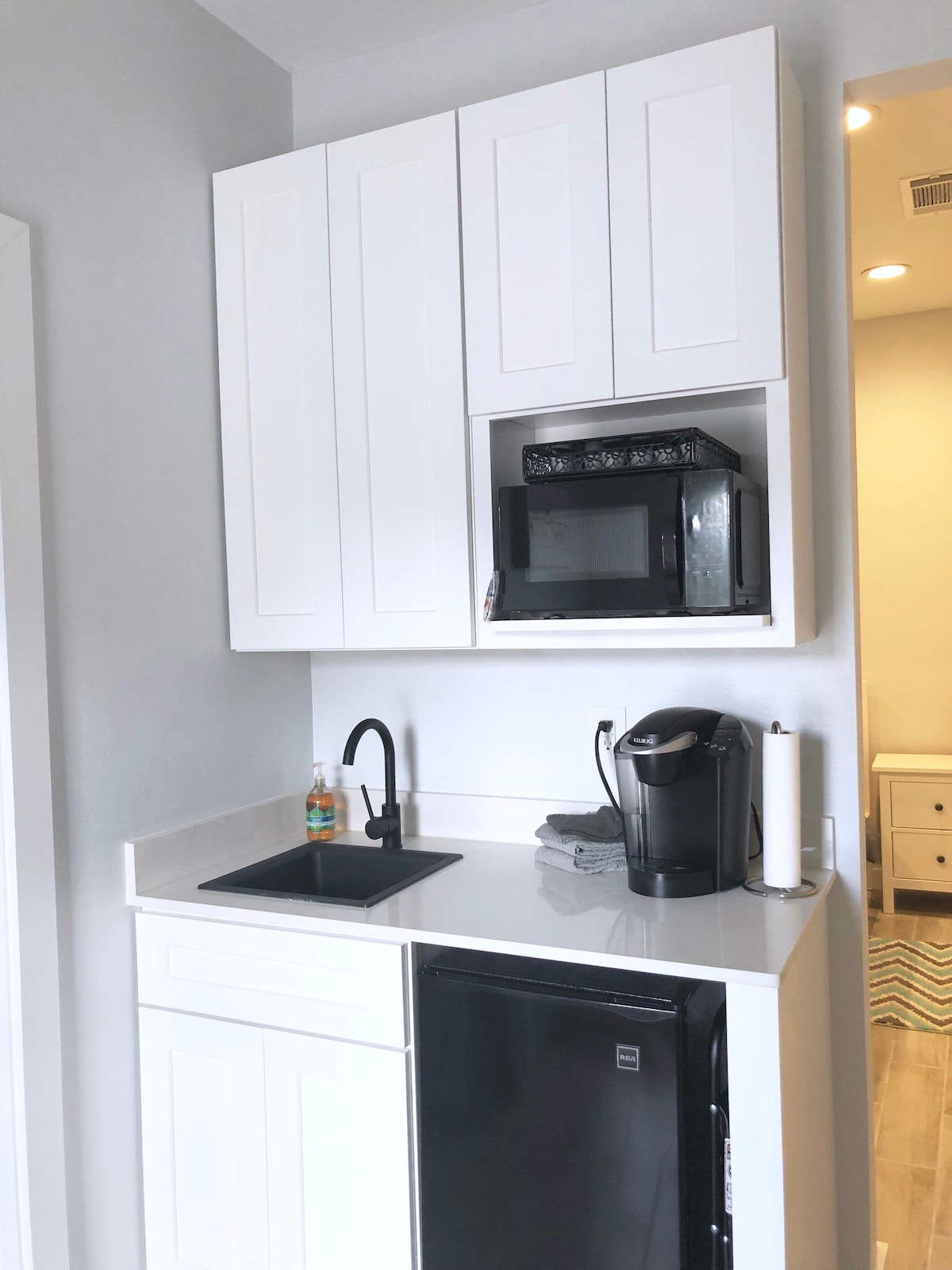 Kitchenette with a Keurig, microwave, and mini-refrigerator/freeze, infrared hot plate, and utensils. Table, seating for four. A folding Futon can also serve as a second bed. Gateway Church, Gaylord, Goosehead, Grapevine downtown, Colleyville, close. Toyota Music Factory, Cowboys stadium, Downtown Dallas 30 minutes away. A large flat-screen TV with a Roku for your favorite video streaming. It's super quiet and private. 200mg FIOS internet speed!