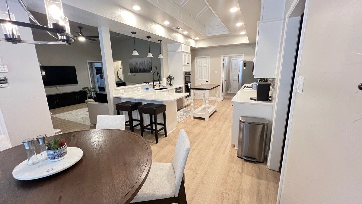 Bright and spacious Trophy Club home perfect for families, groups, or business travelers. Enjoy an open living area with vaulted ceilings, cozy brick fireplace, stylish furnishings, and abundant natural light. The dining space features a large wood table ideal for shared meals or work. With 4 bedrooms and 5 beds, everyone can relax comfortably. Located in a quiet neighborhood with easy access to DFW Airport, Dallas, Fort Worth, shopping, and dining.