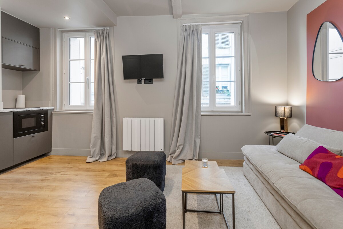 Çimərlik və kazinodan 2 dəqiqəlik məsafədə yerləşən Trouvil-sur-Merdə yeni və işıqlı 2 otaqlı mənzil. Təbii tonlarda zərif şəkildə bəzədilmiş, premium yataq dəsti ilə təchiz edilmiş yataq otağı və divan çarpayısı olan rahat qonaq otağı təklif edir. Tam təchiz olunmuş mətbəx, Nespresso qəhvə maşını, Ağıllı TV, kondisioner və Wi-Fi. A la carte otel xidmətləri (səhər yeməyi və təmizlik). Villa Léa by Le Fer à Cheval, Trouville-in mərkəzində rahatlıq və cazibədarlıq.