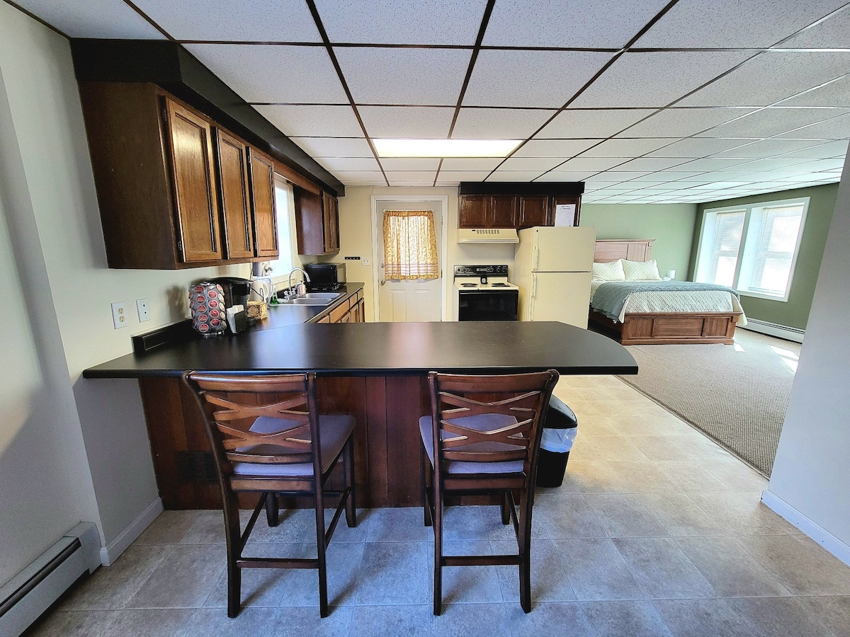 Welcome to our enchanting loft retreat! Our thoughtfully designed apartment offers a serene escape with a touch of sophistication. Ascend the spiral staircase to discover a cozy bedroom complete with a work space and reading nook. Hidden up a trap door on the third level are two twin beds for the nimble. A full deck complete with a small fire pit is available in the warmer months. Your getaway awaits!