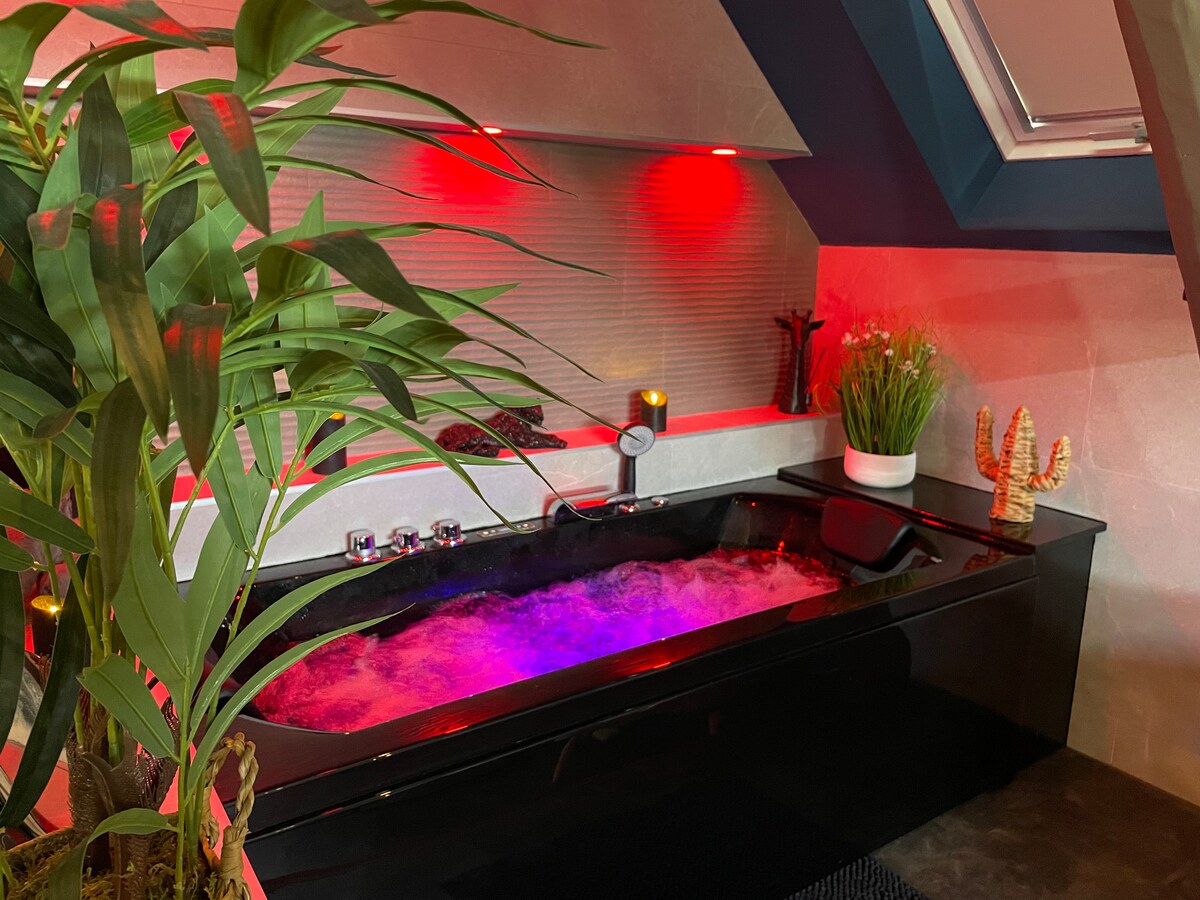Plongez dans une parenthèse céleste au cœur de la galaxie: Entre ciel étoilé, lune lumineuse et nébuleuses murales, vivez une nuit hors du temps. Profitez d’un Spa Balnéo haut de gamme avec jet massants et luminothérapie, d’un sauna & d’une ambiance cosmique unique. Le tout 100% privatif. Chaque détail vous transporte dans l’univers : météorites, voie lactée, ciel étoilé… Une escapade relaxante et immersive, idéale pour rêver à deux. Portail spatial en libre-service : Check-in / out autonome