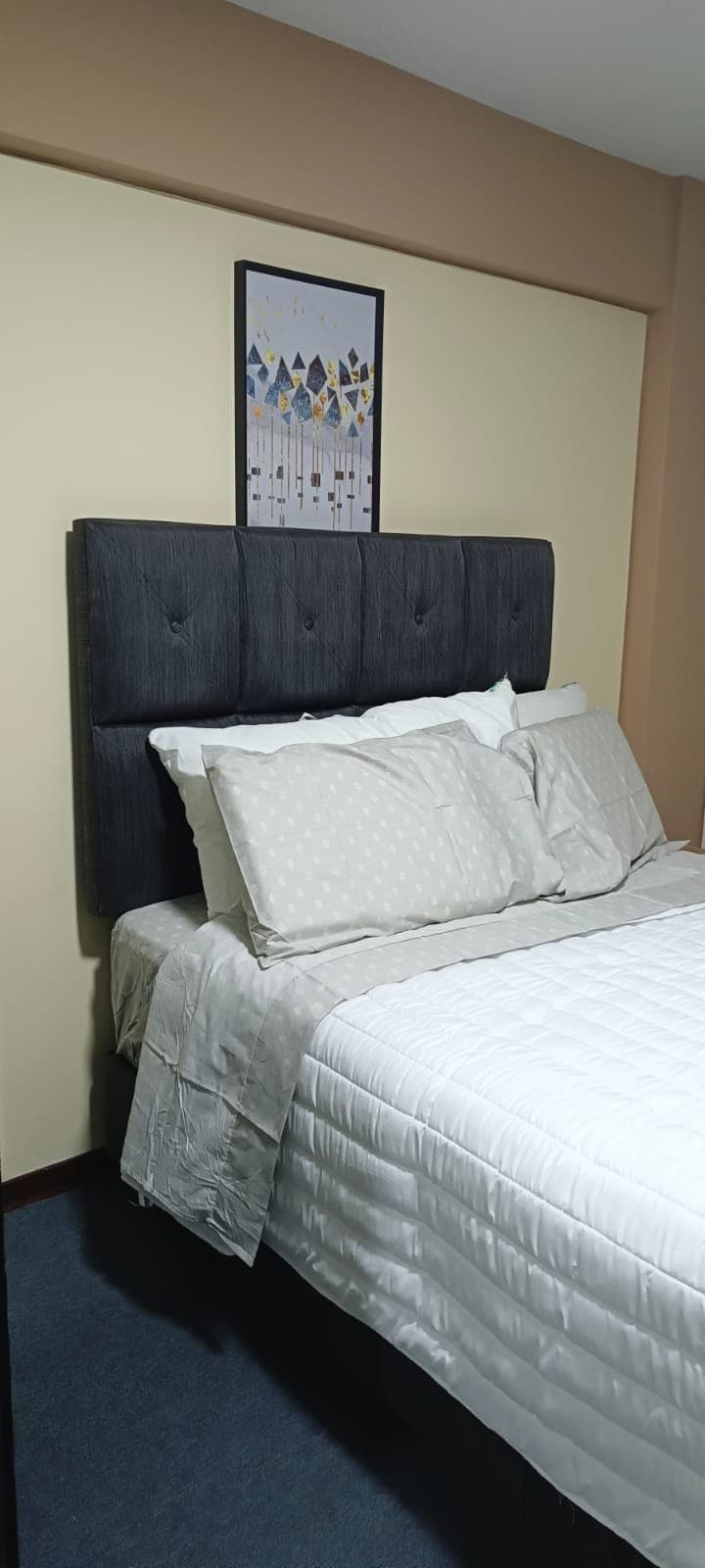 Moderno, tranquilo, ubicado en pleno centro de Trujillo, muy ventilado con luz natural porque todos los ambientes tienen ventanas al exterior, ideal para familias hasta seis personas, porque cuenta con sala, comedor (6), cocina equipada, 1 dormitorio matrimonial con baño privado, y dos dormitorios con camas diván y colchones ROSEN, con baño completo, con mesa de trabajo para laptop, tres televisores, agua caliente, área recreativa para niños, estacionamiento privado con seguridad las 24 horas.