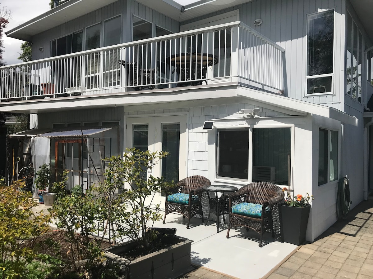 Ayrıca girişi və ayrıca verandası olan yeni, parlaq, əsas səviyyəli süita. Parklarla əhatə olunmuş sakit qonşuluğumuzdan və çimərliyə cəmi 1 km-lik cığırla getməkdən zövq alın. Bərə, AVM, akvapark, qolf meydançaları və restoranlara 5 dəqiqəlik məsafədə, hava limanına 30 dəqiqəlik, Vankuver şəhərinin mərkəzinə isə 40 dəqiqəlik məsafədə rahat yerləşir. Süita rahatdır, iki 150-179 sm-lik çarpayı və qatlanan divan var. Əlavə edilmiş, lakin olduqca ayrı olan və nəyəsə ehtiyacınız olarsa, əlçatan olan əsas evdə yaşayırıq.