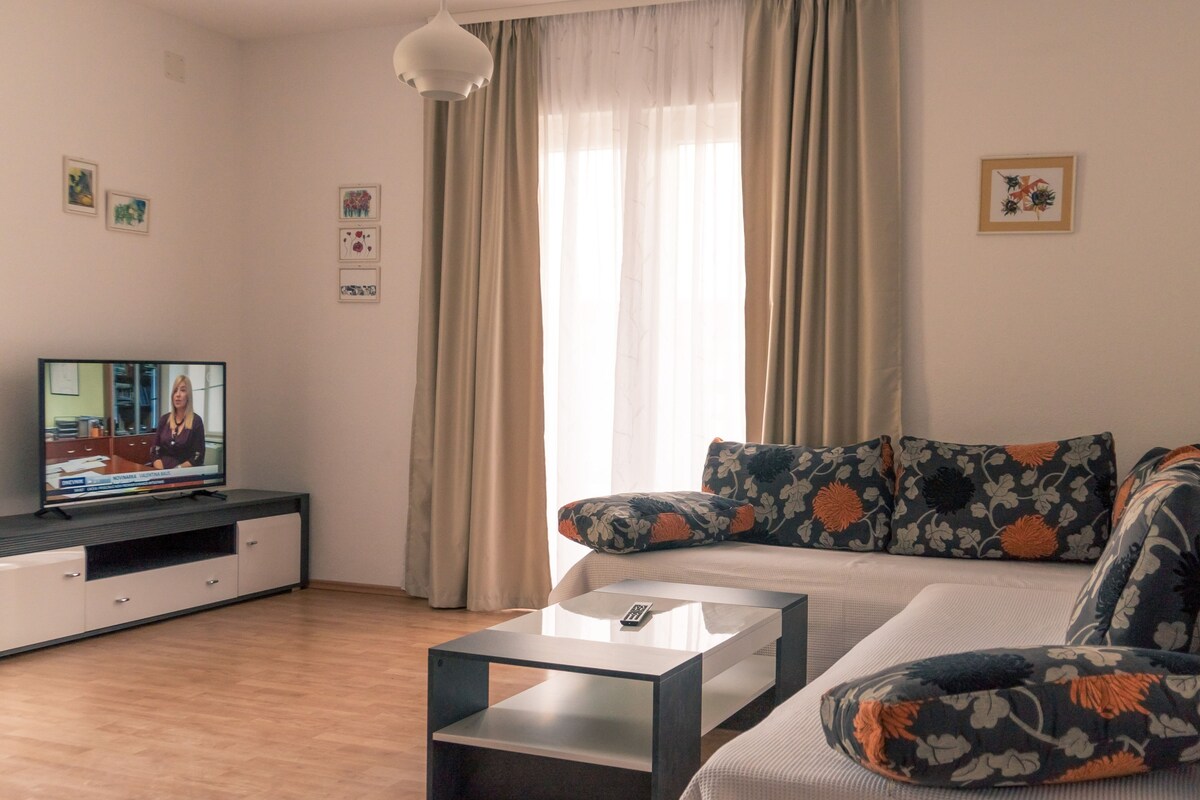 Tətiliniz üçün ideal olan yeni mənzilimizə xoş gəlmisiniz! İki yataq otağı, qonaq otağı, yemək otağı olan mətbəx, hamam otağı və ayrıca tualetdən ibarətdir. Yeni tikilmiş inkişafda yerləşir, gözəl çimərlikdən cəmi bir neçə dəqiqəlik məsafədədir. Füsunkar dəniz mənzərəli böyük terrasdan zövq alın. Süita beş nəfərə qədər ailə üçün mükəmməl müasir mebel və bir çox əlavələrlə tam təchiz edilib. Bu gün qonaqlamanızı bron edin.